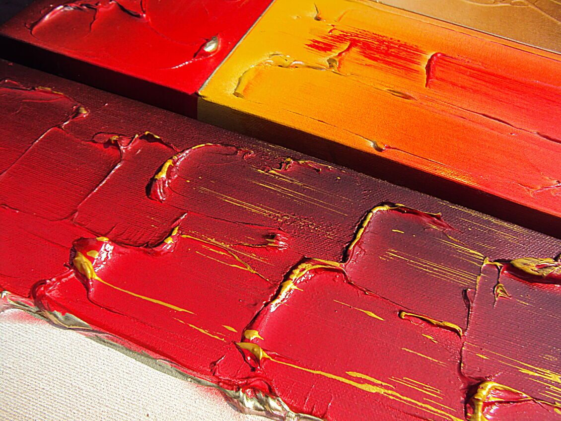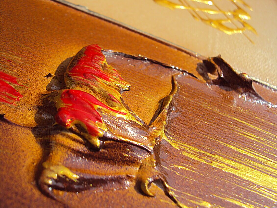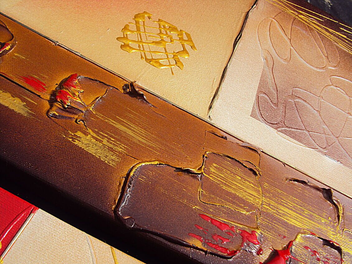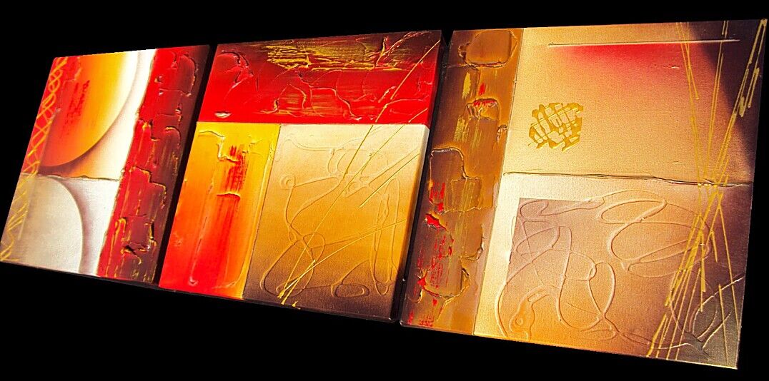 OPERA COMPOSTA DA 3 TELE 40 X 40 X 2 CM - E' STATA UTILIZZATA TECNICA 3D +OLII+ACRILICI+ METALLICI+PASTE RILIEVO - 230 EURO+SPSP