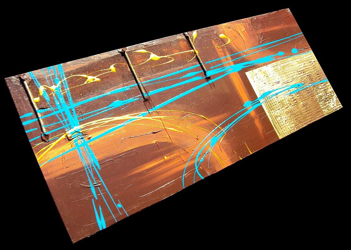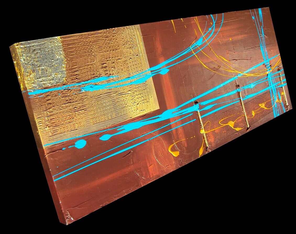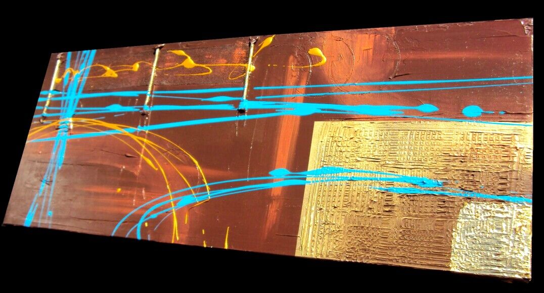 Opera realizzata in tecnica mista tridimensionale polimaterica ,mediante l'utilizzo di colori acrilici , olii e metallici , paste acriliche, inserti . L'opera , e' composta da 1 tela 40 x 100 x 4 cm . Il prezzo di vendita e' di 220 ,00 euro+spsp