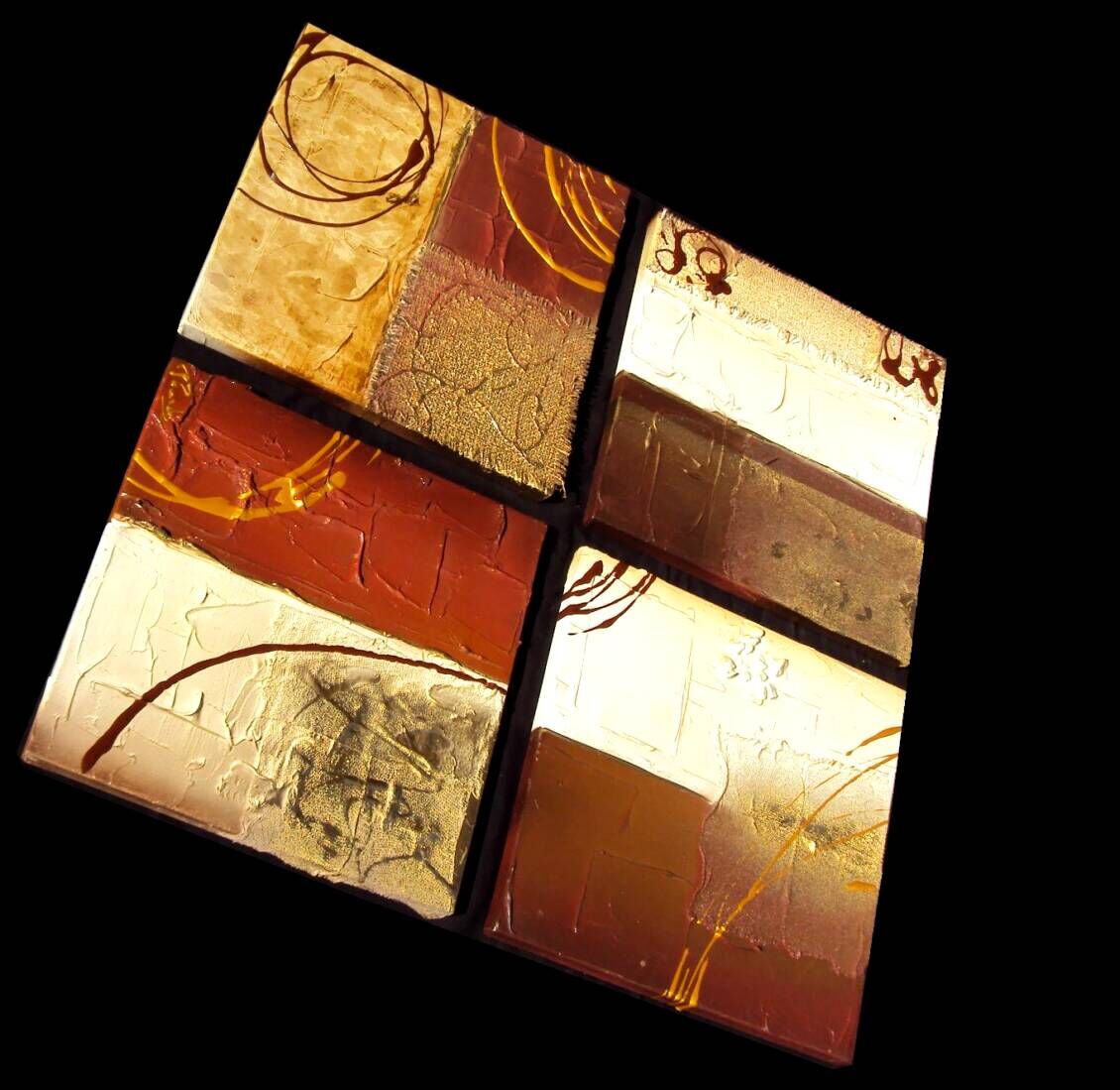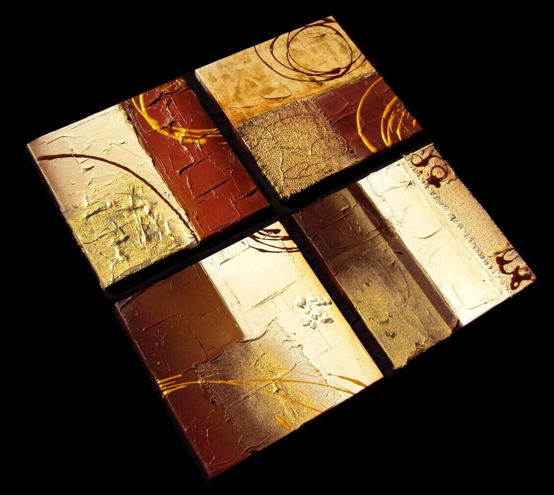 E' STATA UTILIZZATA TECNICA 3D OLII+METALLICI+INSERTI+ACRILICI+INSERTI+CANAPA+SABBIE+ PIGMENTI PREZIOSI METALLICI - L'OPERA E' COMPOSTA DA 4 TELA 30X30X2 CM - 240 EURO+SPSP