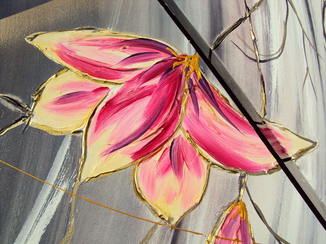 Opera realizzata in tecnica mista ,mediante l'utilizzo di colori acrilici , olii e metallici , paste acriliche, RESINE CRISTALLO . L'opera , e' composta da 2 tele 30 x 70 x 2 cm + 2 tele 40 x 50 x 2 cm . Prezzo 240,00 euro + sp sp