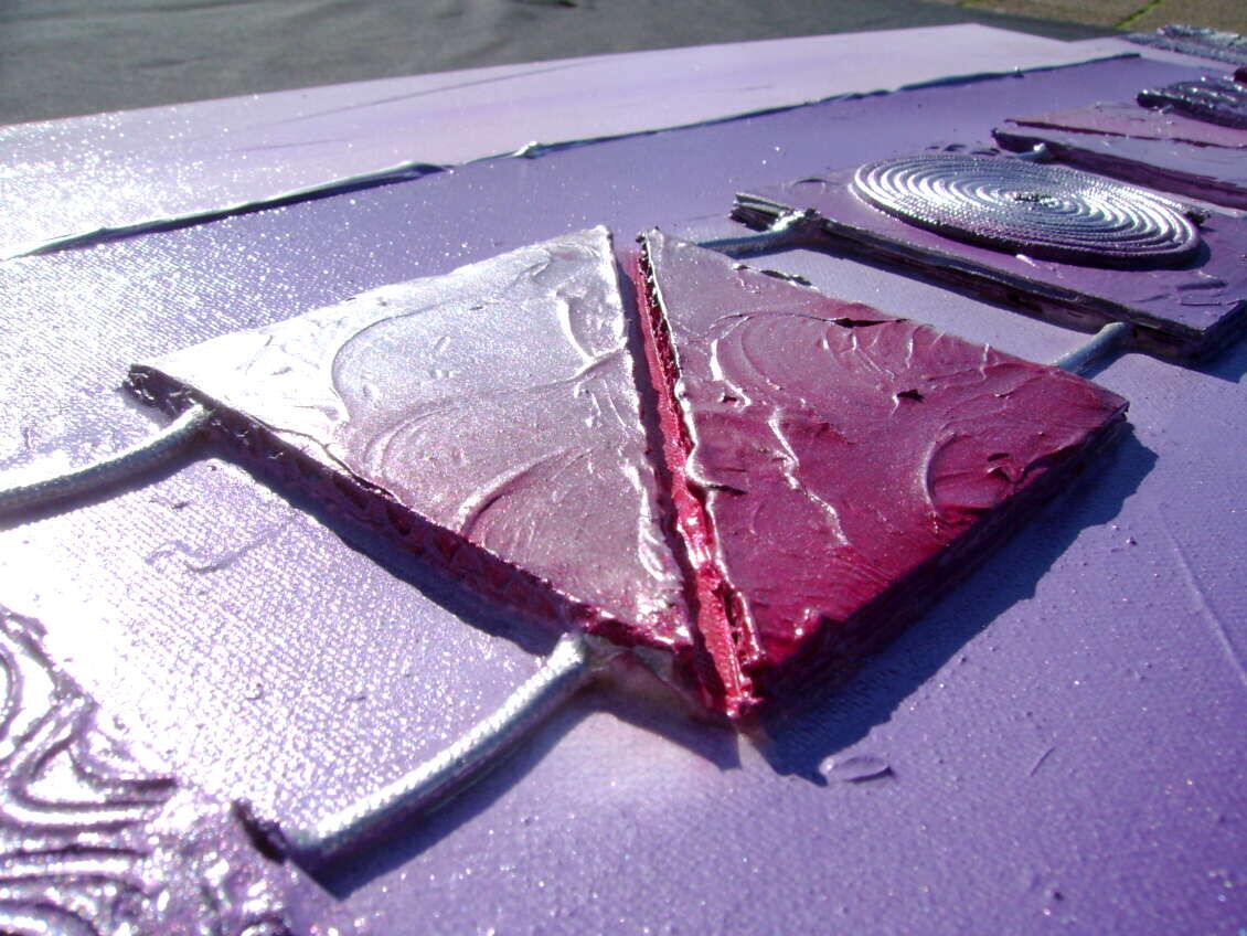 Opera realizzata in tecnica mista ,mediante l'utilizzo di colori acrilici , olii e metallici , paste acriliche, inserti . L'opera , e' composta da 2 tele 40 x 40 x 2 cm + 1 tela 80 x 40 x 4 cm . Il prezzo di vendita e' di 230 ,00 euro+spsp