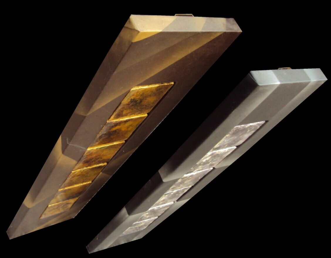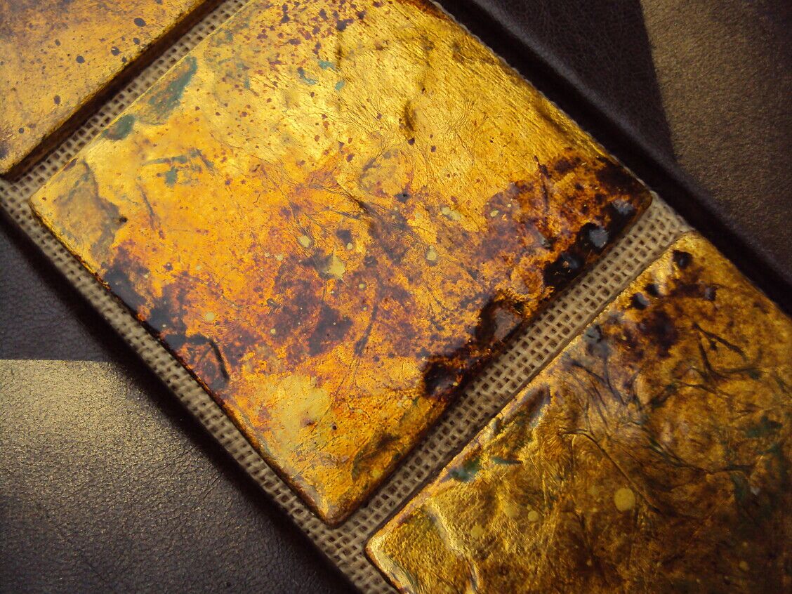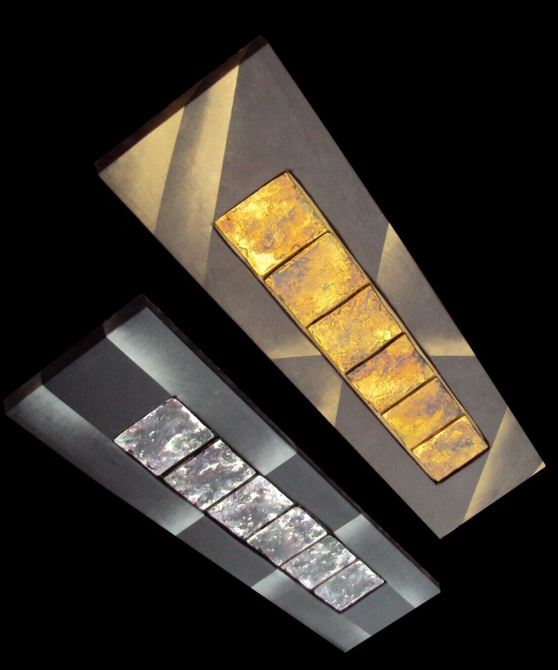 OPERA REALIZZATA 100% A MANO CON TECNICA MISTA POLIMATERICA CON INSERTI DI CERAMICA LAVORATI A SMALTO SU FOGLIA ORO E FOGLIA ARGENTO , CON CORNICE IN PELLE ECOLOGICA. OPERA REALIZZATA SU 2 SCATOLE DI LEGNO REALIZZATE A MANO AL 100% DI CM 22X89X2 . PREZZO SCONTATO EURO 280,00