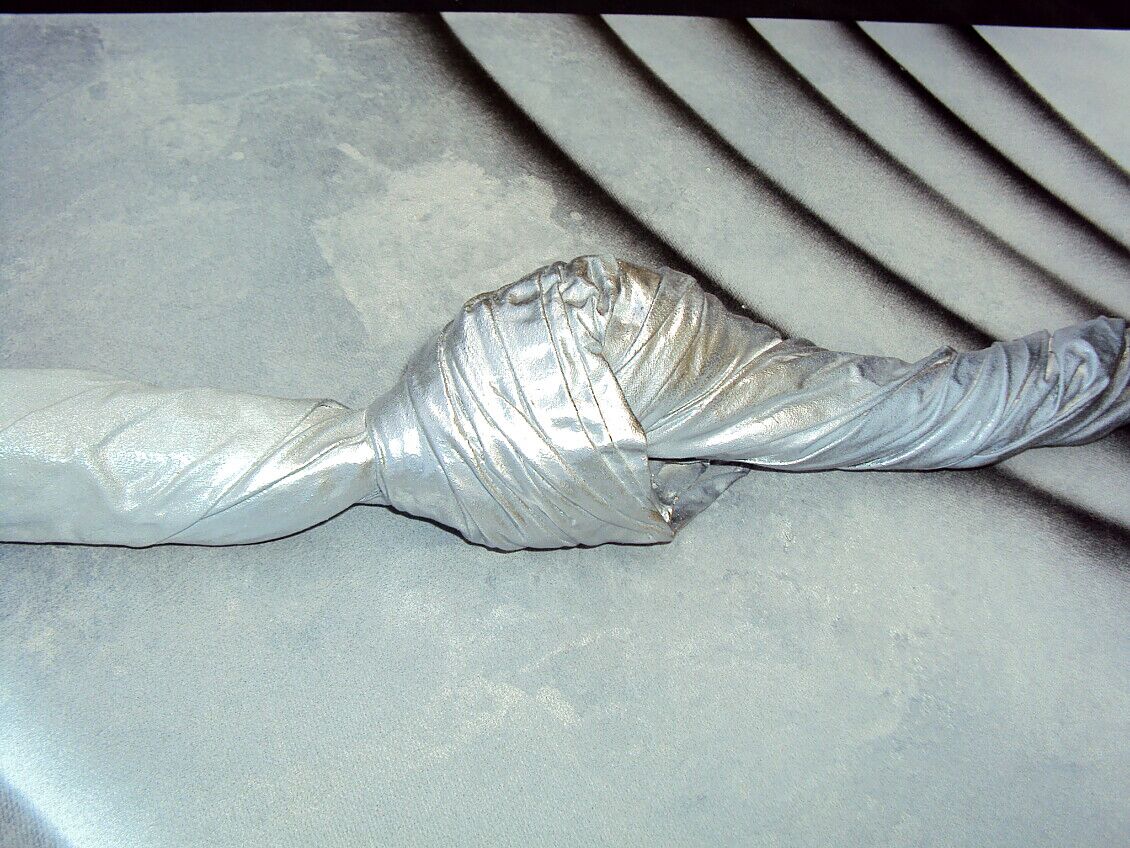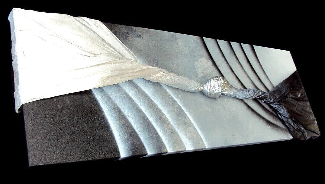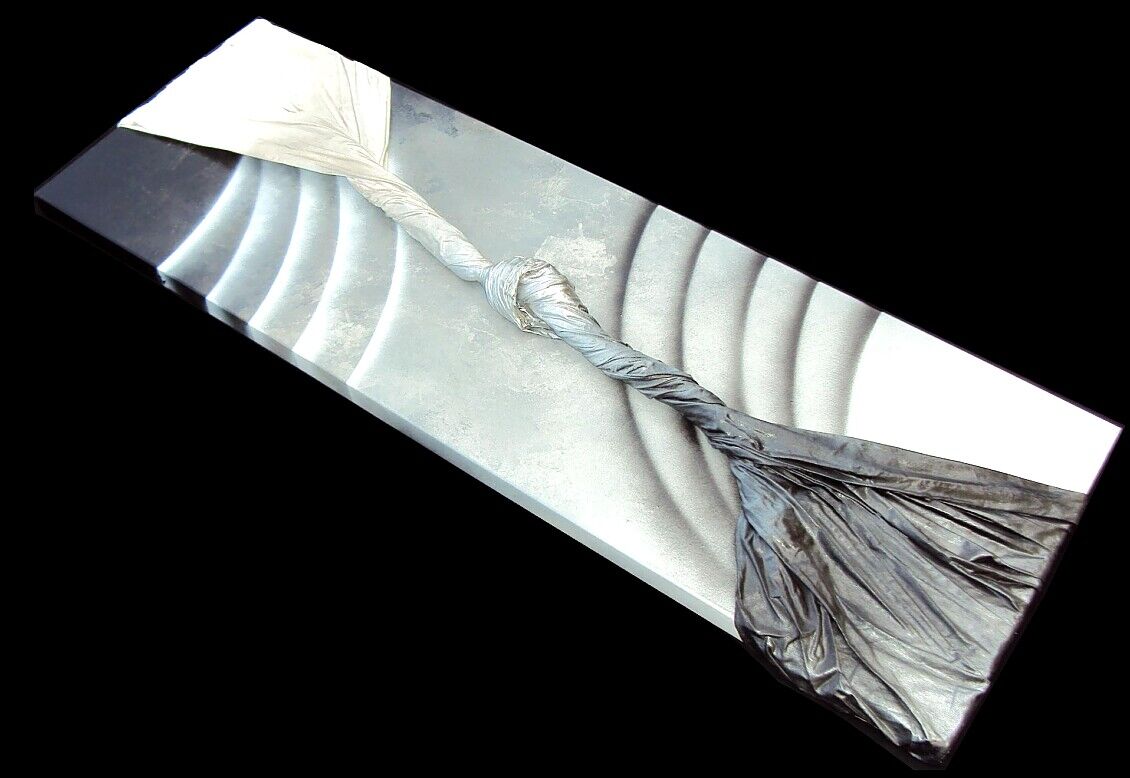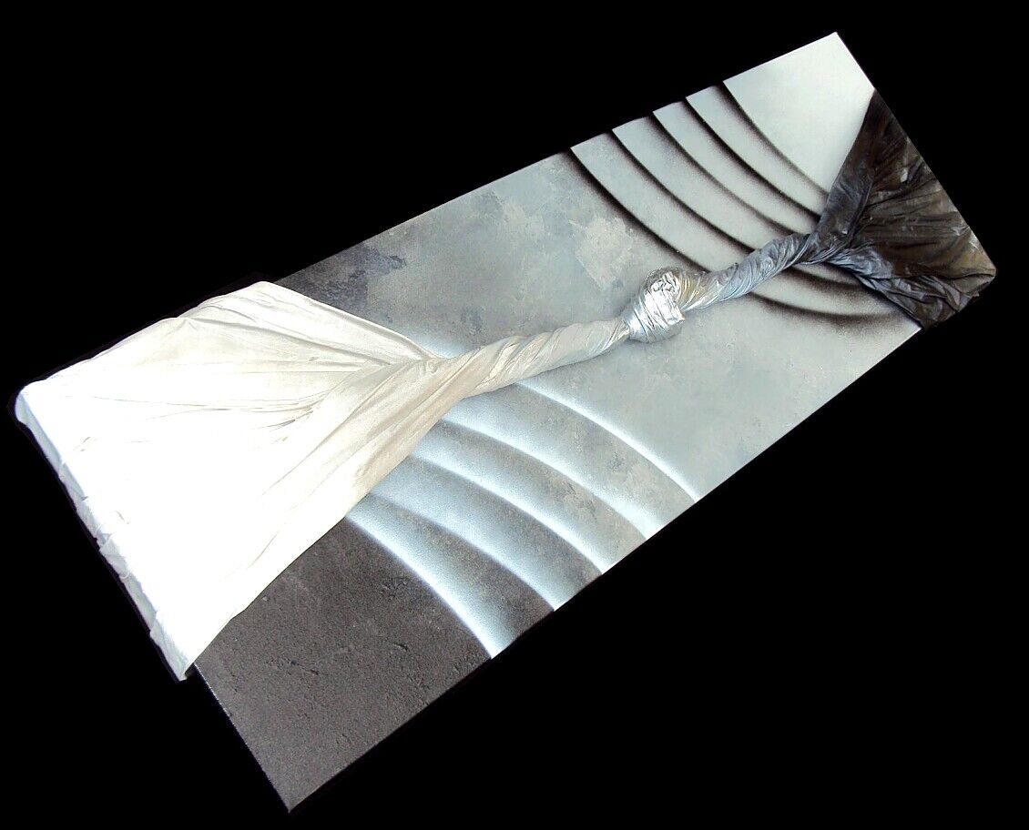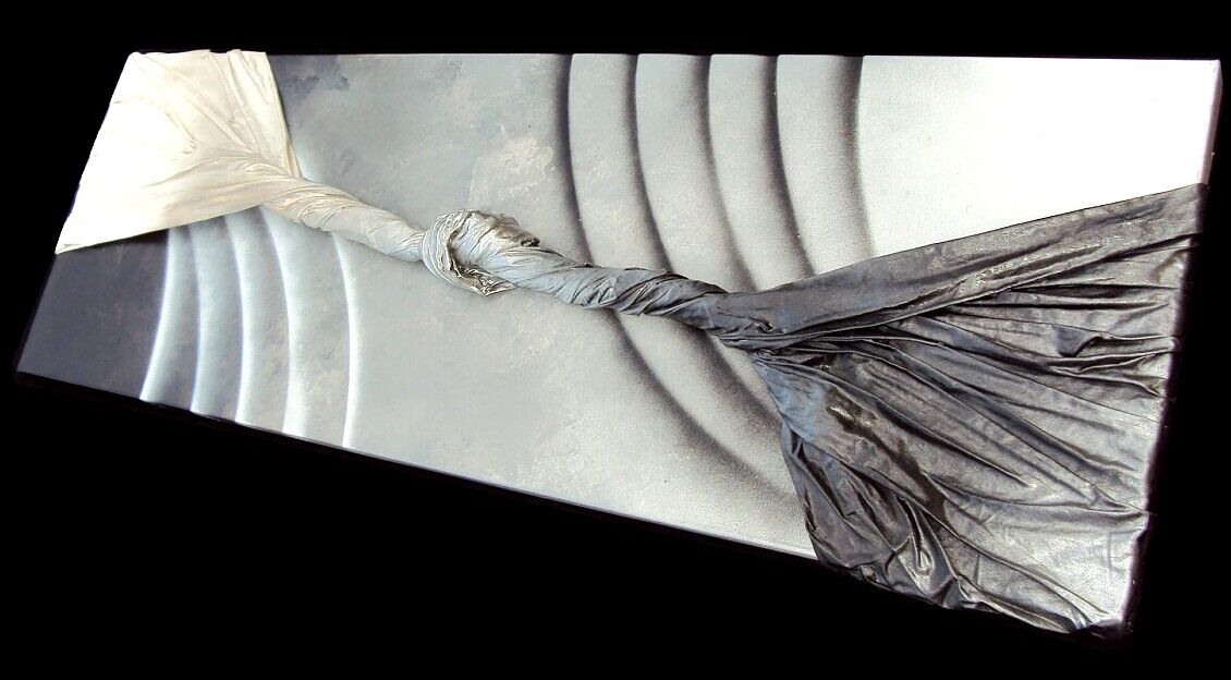 Opera realizzata in tecnica mista ,mediante l'utilizzo di colori acrilici , olii e metallici , paste acriliche, inserti di stoffa . L'opera , e' composta da 1 tela 120 x 40 x 4 cm . Il prezzo di vendita e' di 260 ,00 euro+spsp