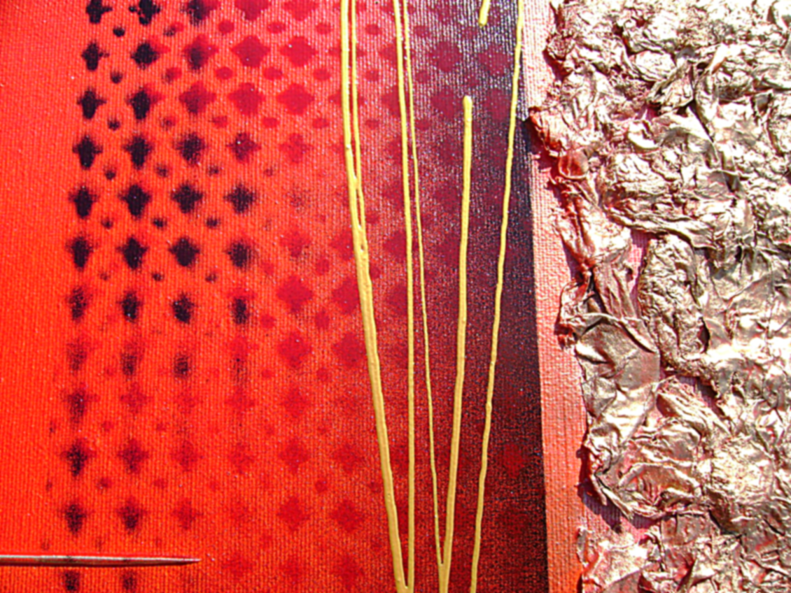 E' stata utilizzata Tecnica Tridimensionale Polimaterica, colori ad olio , acrilici metallici , oro , inserti e resine .L'opera e' composta da 2 tele 40 x 40 x 2 cm + 1 tela 50 x 50 x 2 cm . Prezzo 190,00 euro