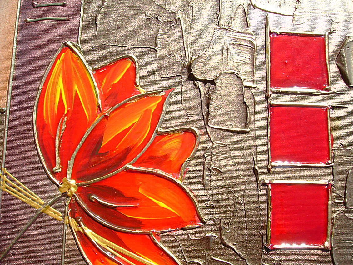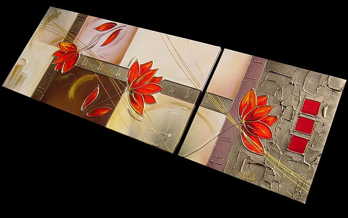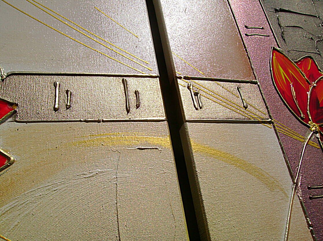 UTILIZZATA TECNICA 3D CON EFFETTO VETRO NEI PETALI DEI FIORI + OLI+ACRILICI+METALLICI E PIGMENTI - OPERA COMPOSTA DA 1 TELA 80 X 40 X 2 CM + 1 TELA 40 X 40 X 2 CM - 190 EURO + SP SP