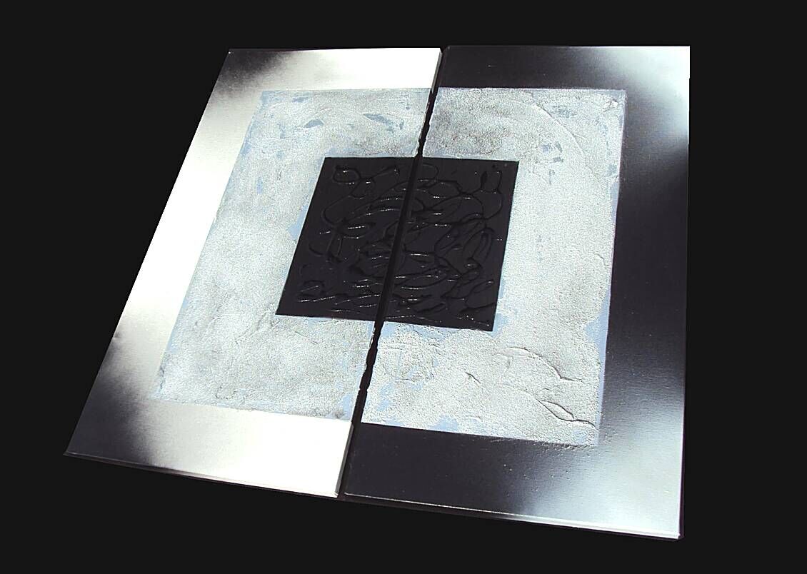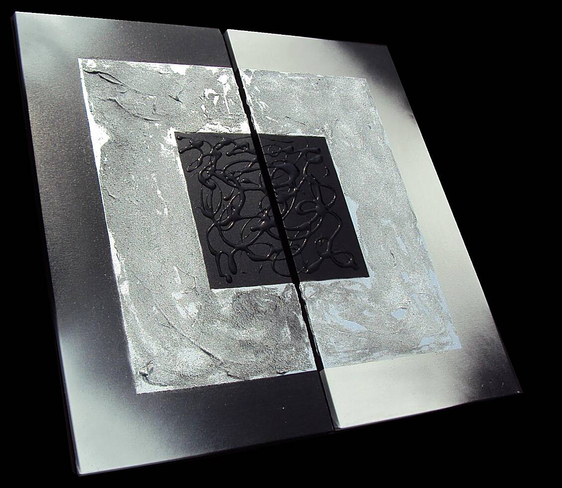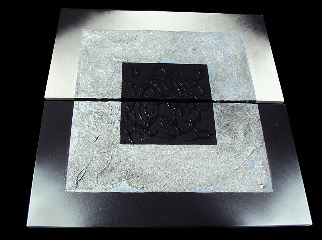 UTILIZZATA TECNICA MISTA TRIDIMENSIONALE . COLORI ACRILICI ED A OLIO+ METALLICI + SABBIE DI FIUME. OPERA COMPOSTA DA 2 TELE 40 X 80 X 2 CM -