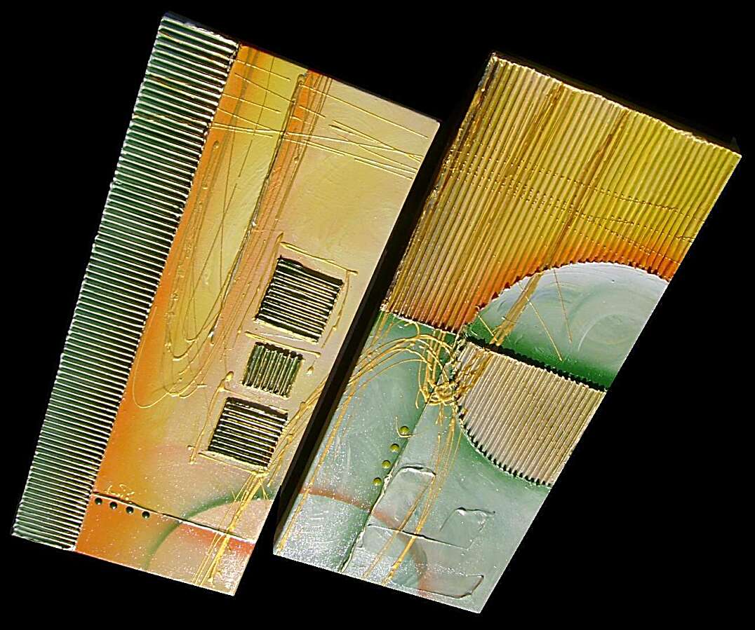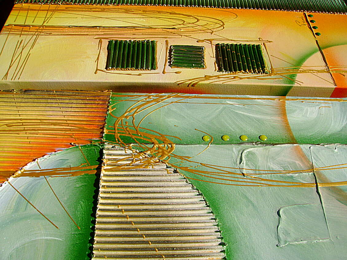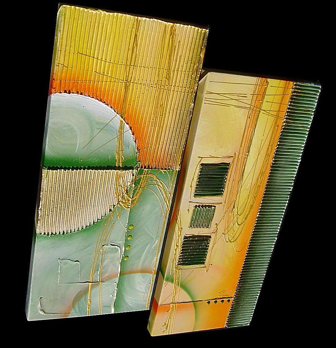 Opera realizzata in tecnica mista ,mediante l'utilizzo di colori acrilici , olii e metallici , paste acriliche , inserti. L'opera , e' composta da 2 tele 30 x 70 x 4 cm . Il prezzo di vendita e' di 220 ,00 euro+spsp