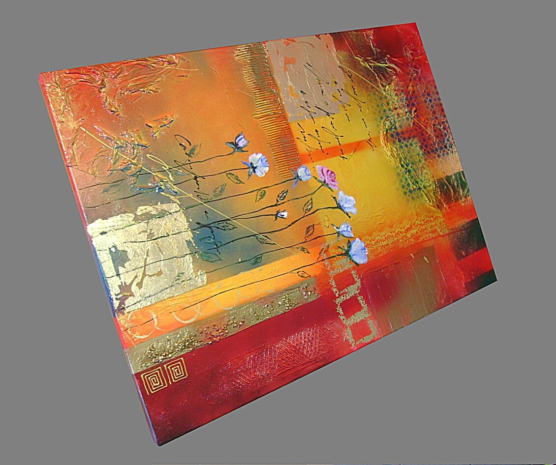 E' STATA REALIZZATA MEDIANTE TECNICA ED OLII+ACRILICI+ METALLICI+ INSERTI+FOGLIE D'ORO-OPERA COMPOSTA DA 1 TELA 60 X 80 X 2 CM - 190 EURO+SPSP