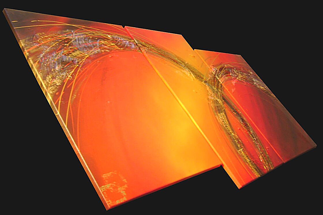Opera realizzata mediante tecnica 3d ad olio+ acrilici+ metallici e paste a rilievo + metallici e pigmenti.- Composto da 2 tele 50 x 70 x 2 cm + 1 tela 40 x 80 x 2 cm - 190,00 euro + spsp