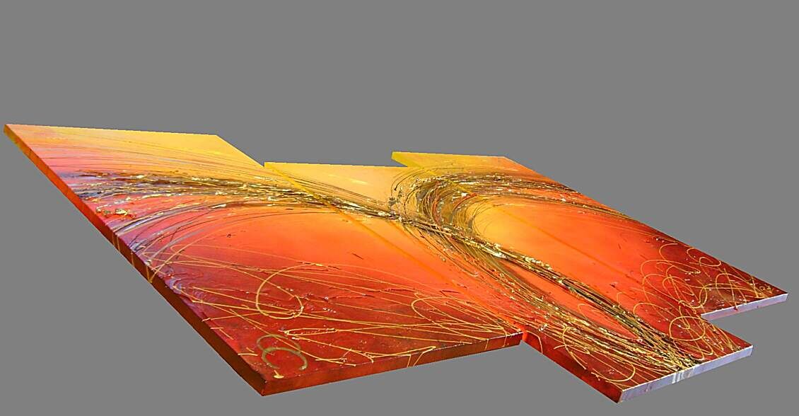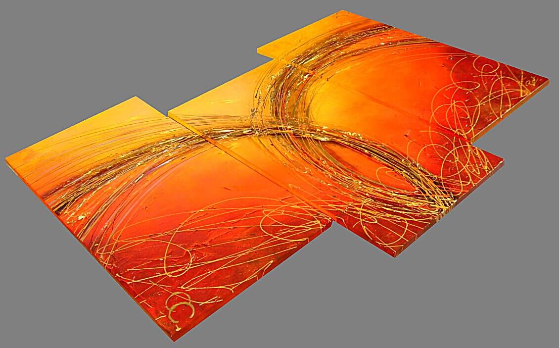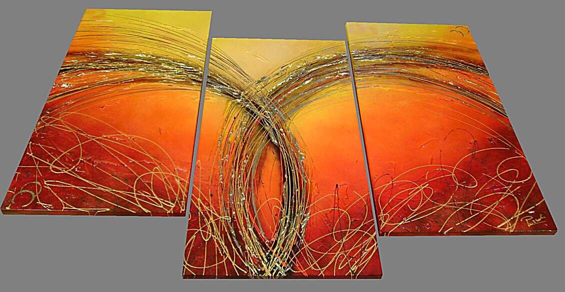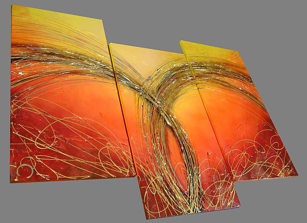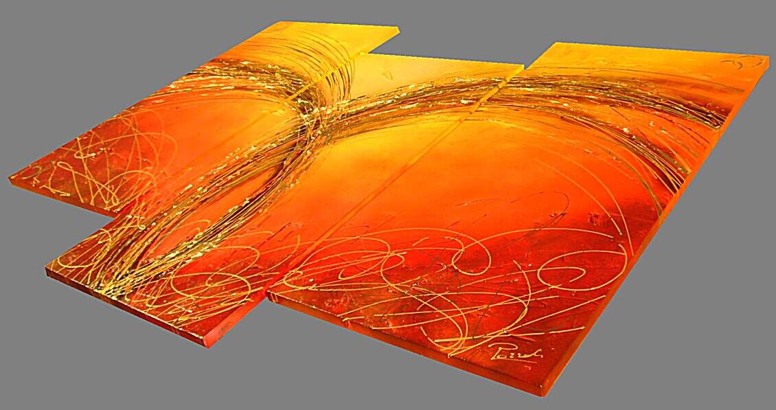 OPERA REALIZZATA MEDIANTE TECNICA MISTA AD EFFETTO 3D CON L' UTILIZZO DI COLORI ACRILICI , PIGMENTI METALLICI , RESINE , PASTE ACRILICHE PER EFFETTI TRIDIMENSIONALI , COLORI METALLICI. L'OPERA IN OGGETTO E' COMPOSTA DA 3 TELE 40 X 80 X 2 CM . IL PREZZO E' DI 190,00 EURO + SP SP