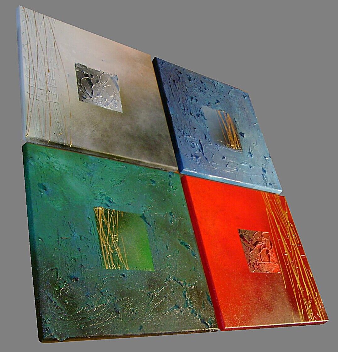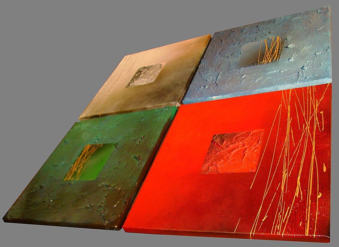 Opera realizzata in tecnica mista 3D , mediante utilizzo di colori acrilici ,sabbie di fiume , pigmenti metallici , colori ad olio , paste acriliche e resine epossidiche . L'opera e' composta 4 tele 40 x 40 x 2 cm . Il prezzo di vendita e' di 190 ,00 euro+spsp