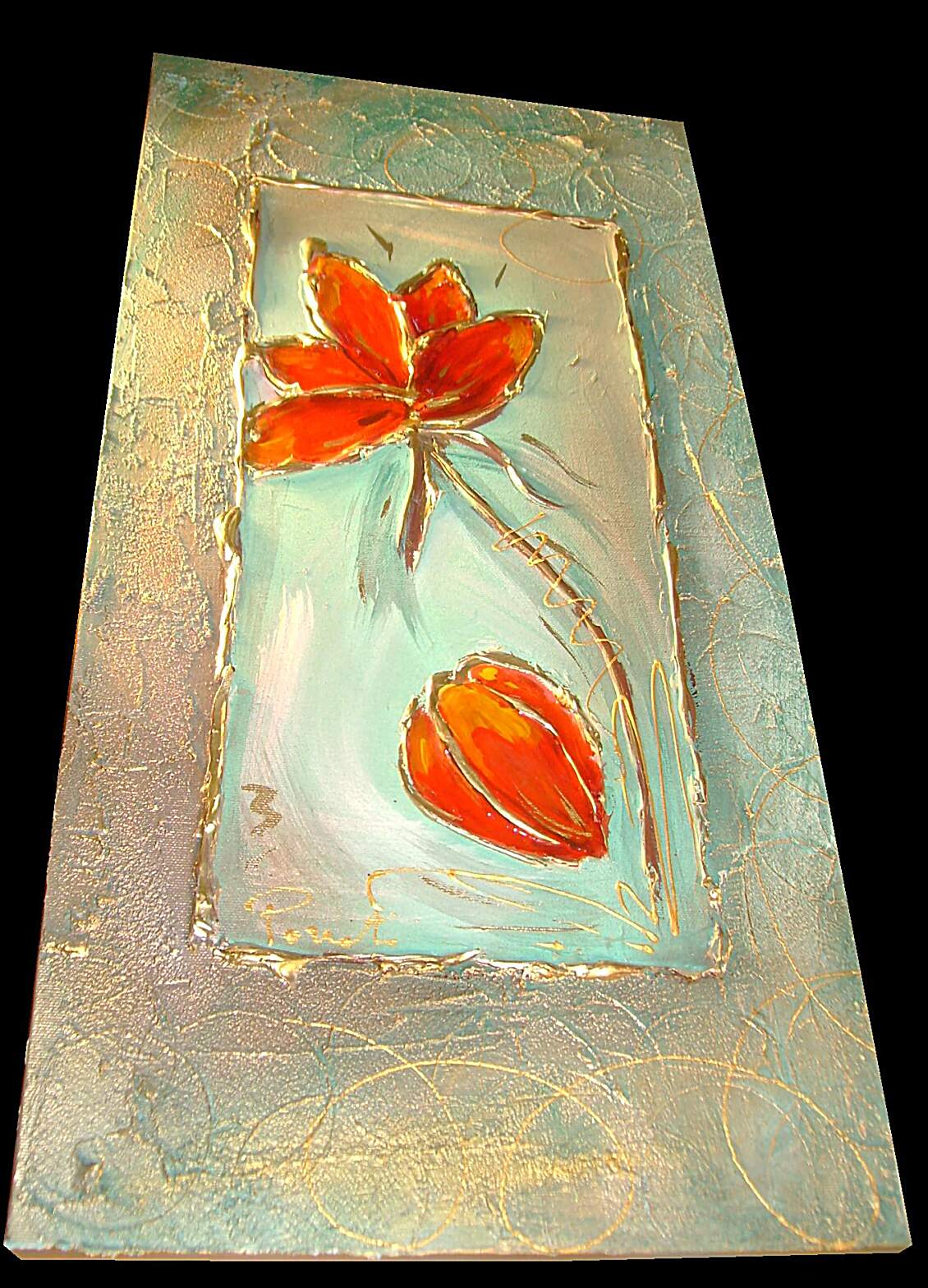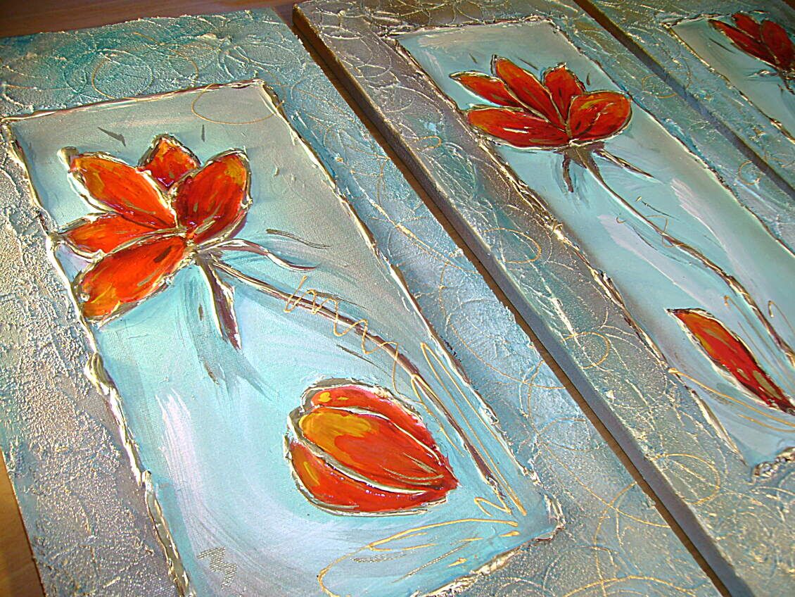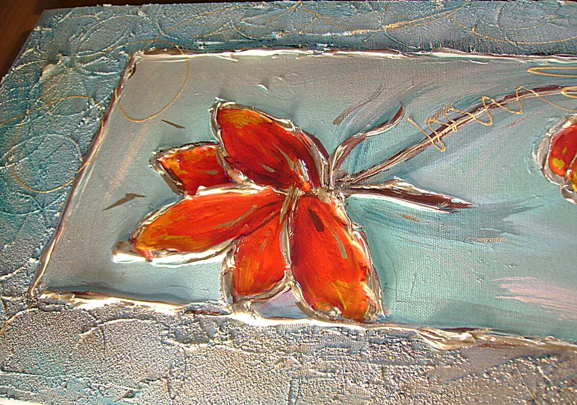 Opera realizzata in tecnica mista TRIDIMENSIONALE , mediante utilizzo di colori acrilici , pigmenti metallici , colori ad olio , resine epossidiche effetto cristallo ,paste acriliche , sabbia di fiume . L'opera e' composta 3 tele 30 x 60 x 2 cm . Il prezzo di vendita e' di 190 ,00 euro+spsp