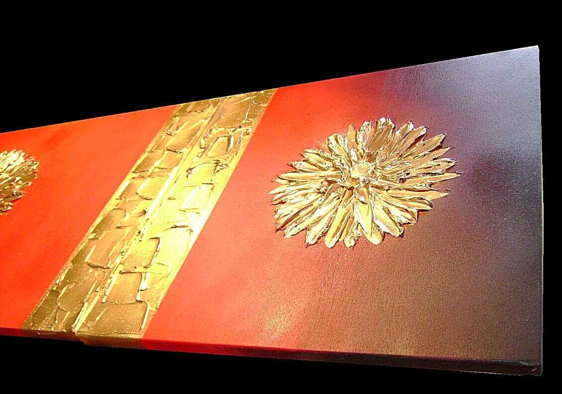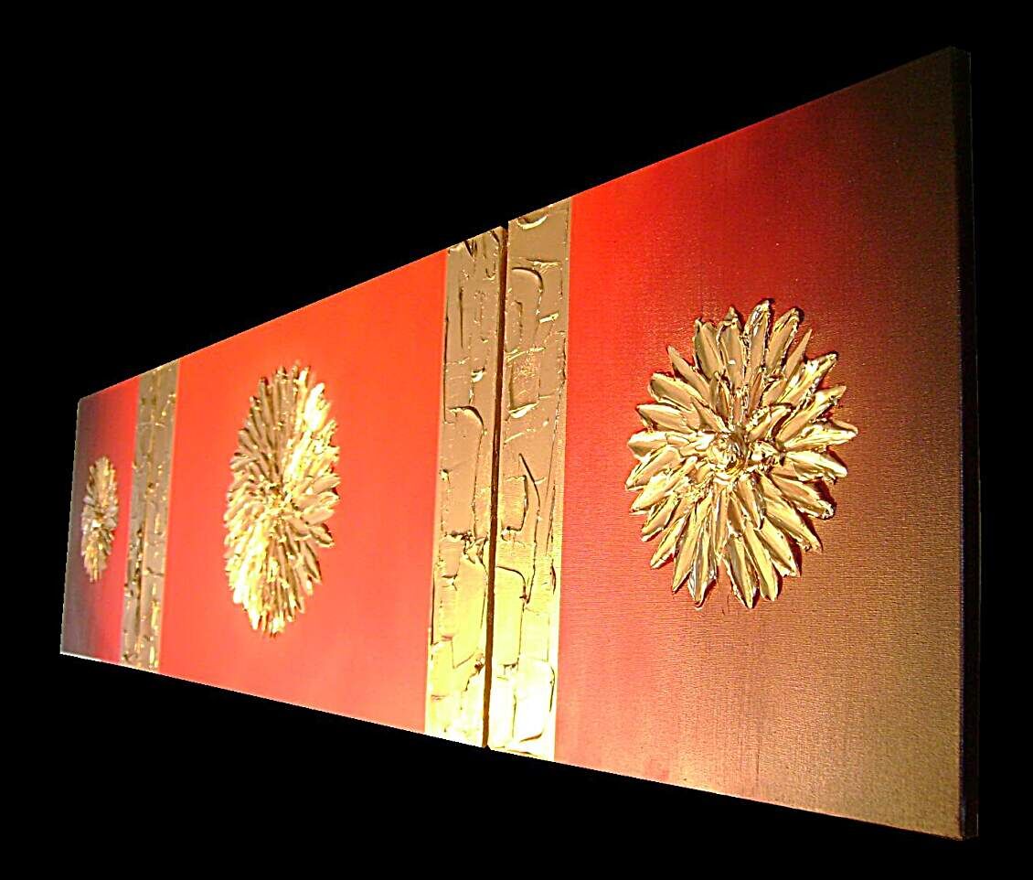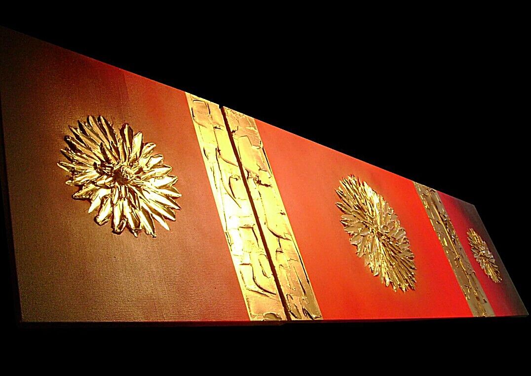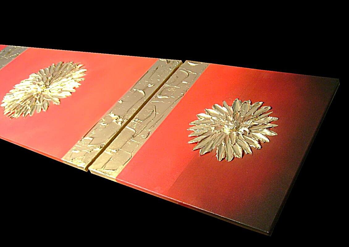 Opera realizzata in tecnica mista TRIDIMENSIONALE , mediante utilizzo di colori acrilici , pigmenti metallici , colori ad olio , paste acriliche . L'opera e' composta 2 tele 50 x 50 x 2 cm + 1 tela 100 x 50 x 2 cm . Il prezzo di vendita e' di 190 ,00 euro+spsp.