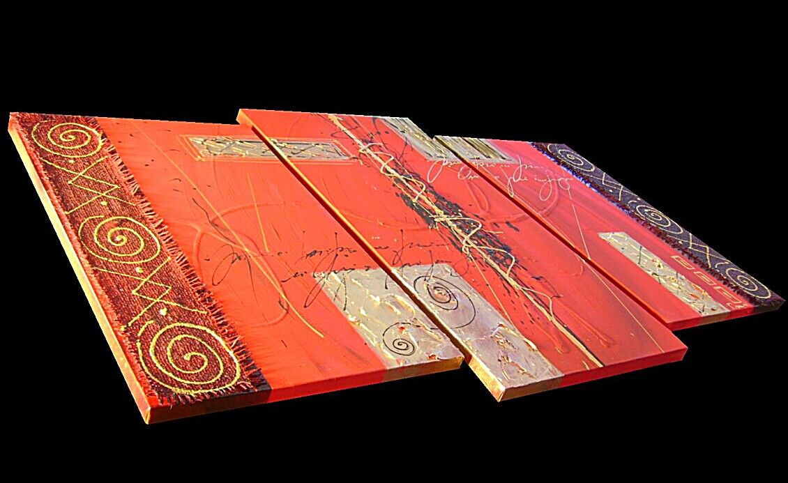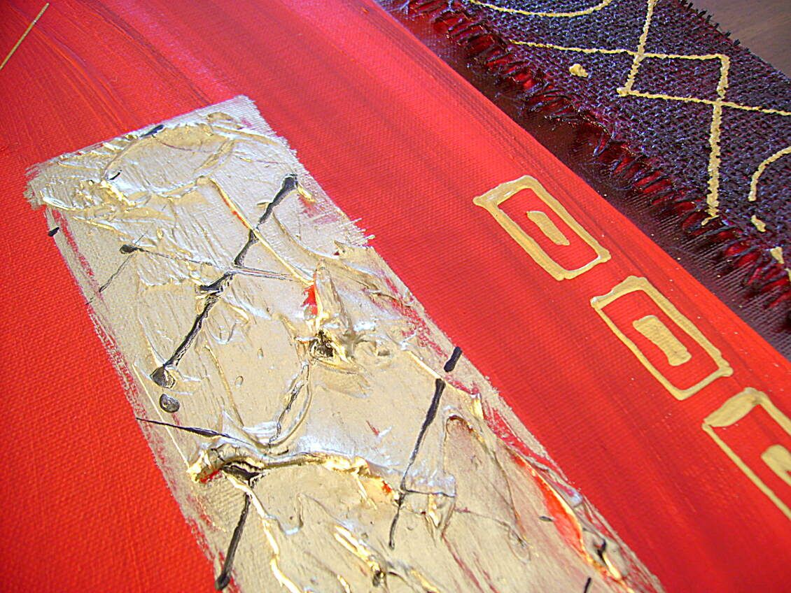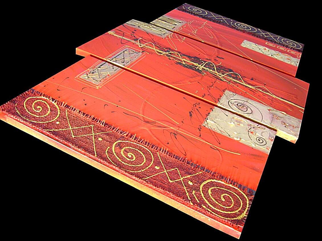 Opera realizzata in tecnica mista TRIDIMENSIONALE , mediante l'utilizzo di CANAPA GREZZA colori acrilici , pigmenti metallici , colori ad olio , paste acriliche . L'opera , e' composta 2 tele 30 x 50 x 2 cm + 1 tela 30 x 60 x 2 cm . Il prezzo di vendita e' di 190 ,00 euro+spsp