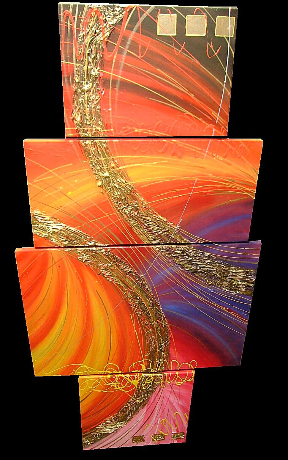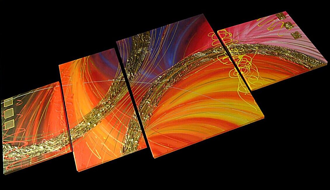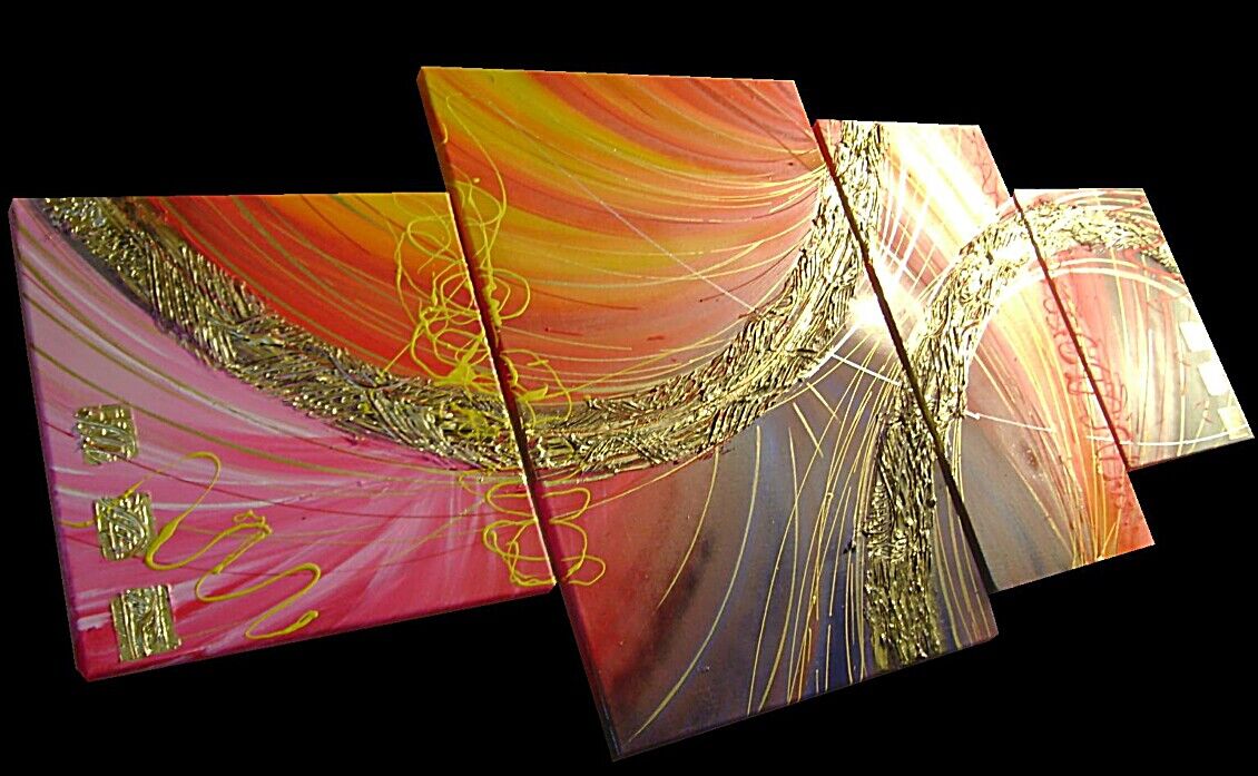 Grandiosa opera realizzata in tecnica 3D mista ,mediante l'utilizzo di colori acrilici , pigmenti metallici , colori ad olio, paste acriliche , resine , inserti ed oro pigm. L'opera , e' composta 1 tela 40 x 40 x 2 cm + 1 tela 30 x 40 x 2 cm + 1 tela 30 x 60 x 2 cm + 1 tela 50 x 70 x 2 cm . Il prezzo di vendita e' di 210 ,00 euro+spsp