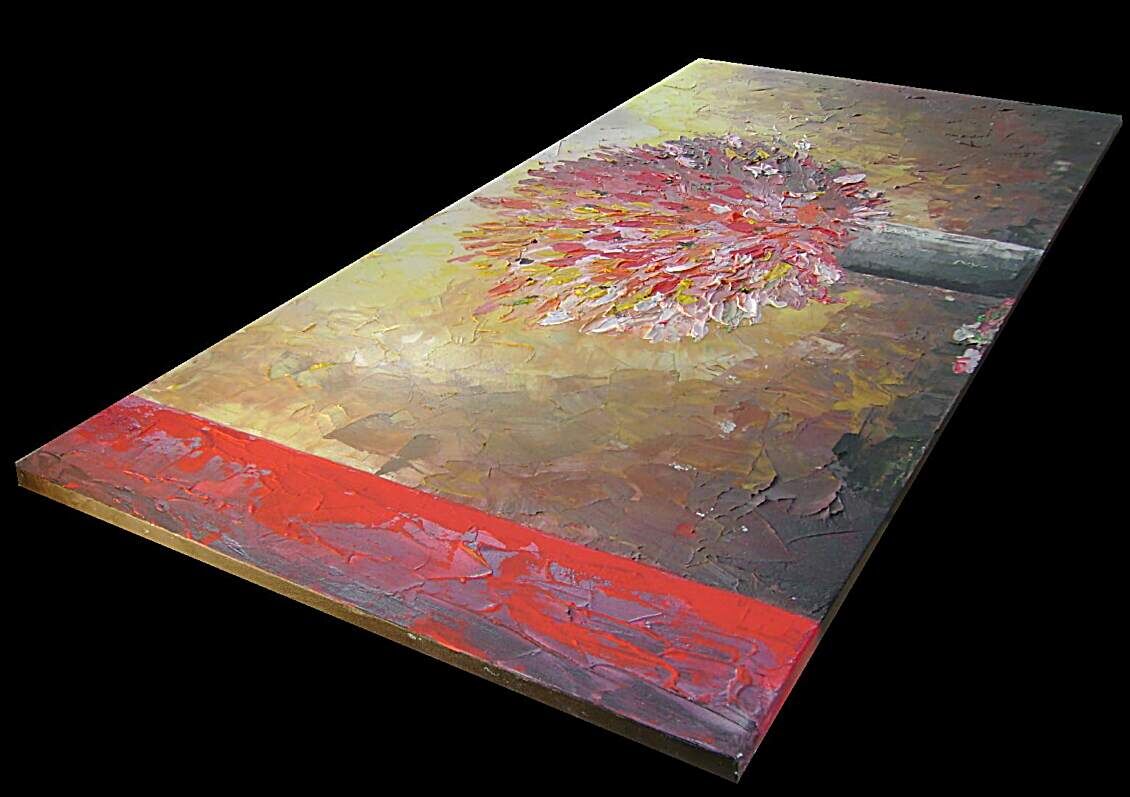 Opera realizzata in tecnica a spatola, 3D mista ,mediante l'utilizzo di colori acrilici , pigmenti metallici , colori ad olio, paste acriliche. L'opera , e' composta 1 tela 100 x 50 x 2 cm . Il prezzo di vendita e' di 190 ,00 euro+spsp