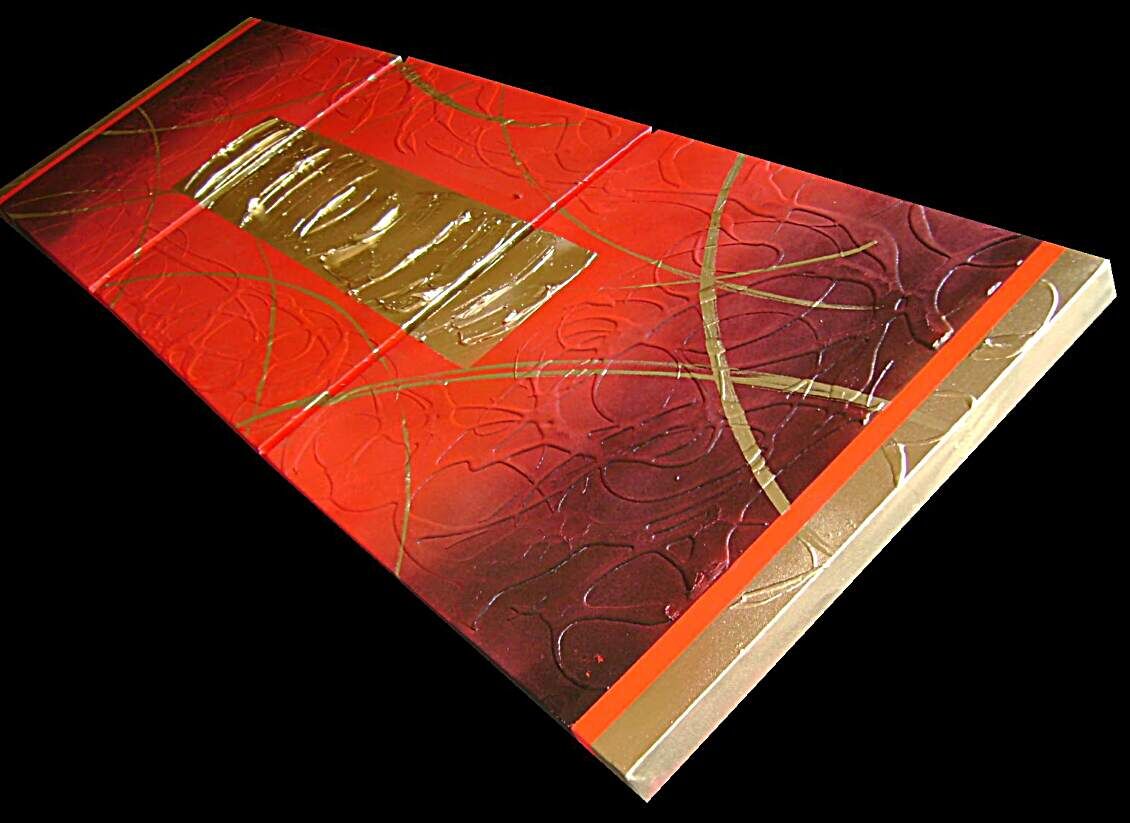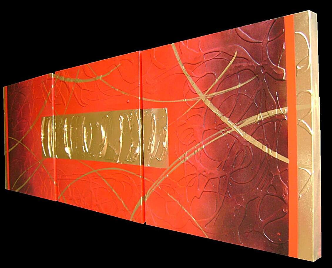 Opera realizzata in tecnica 3D mista ,mediante l'utilizzo di colori acrilici , pigmenti metallici , colori ad olio, paste acriliche. L'opera , e' composta 3 tele 50 x 50 x 4 cm ALTO SPESSORE . Il prezzo di vendita e' di 190 ,00 euro+spsp