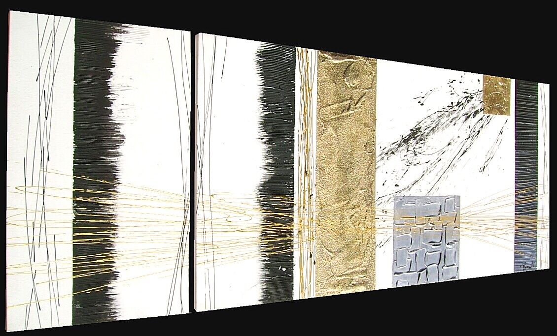 Opera realizzata in tecnica 3D mista ,mediante l'utilizzo di colori acrilici , colori ad olio, resine epossidiche , colori metallici , pigmenti metallici , paste acriliche , oro . L'opera , e' composta 1 tela 100 x 50 x 2 cm + 1 tela 30 x 50 x 2 cm . Il prezzo di vendita e' di 200 ,00 euro+spsp
