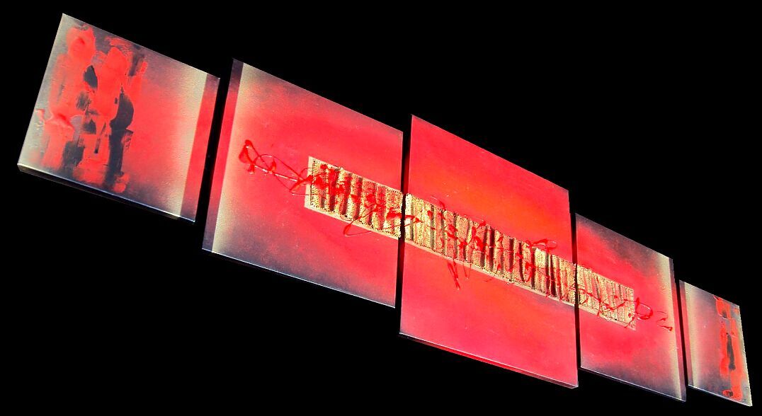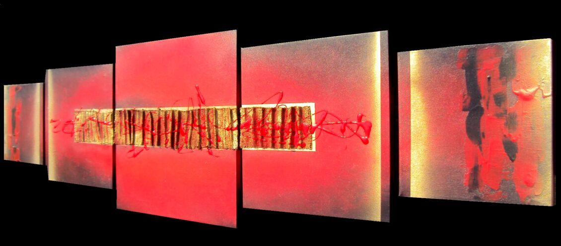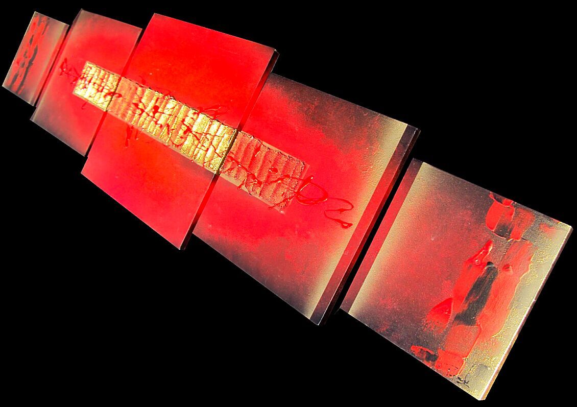 OPERA COMPOSTA DA 2 TELE 30 X 30 X 2 CM + 2 TELE 40X40X2 + 1 TELA 50X50X2 CM - E' STATA UTILIZZATA TECNICA 3D OLI+ACRILICI+PASTE+METALLICI-INSERTI - 250 EURO+SPSP