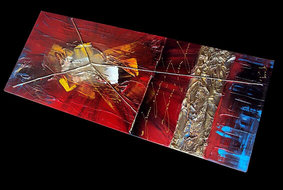Opera realizzata in tecnica 3D mista ,mediante l'utilizzo di colori acrilici , colori ad olio e pigmenti metallici , resine e paste acriliche, INSERTI. L'opera , e' composta da 1 tela 40 x 100 x 2 cm. Il prezzo di vendita e' di 190 ,00 euro+spsp