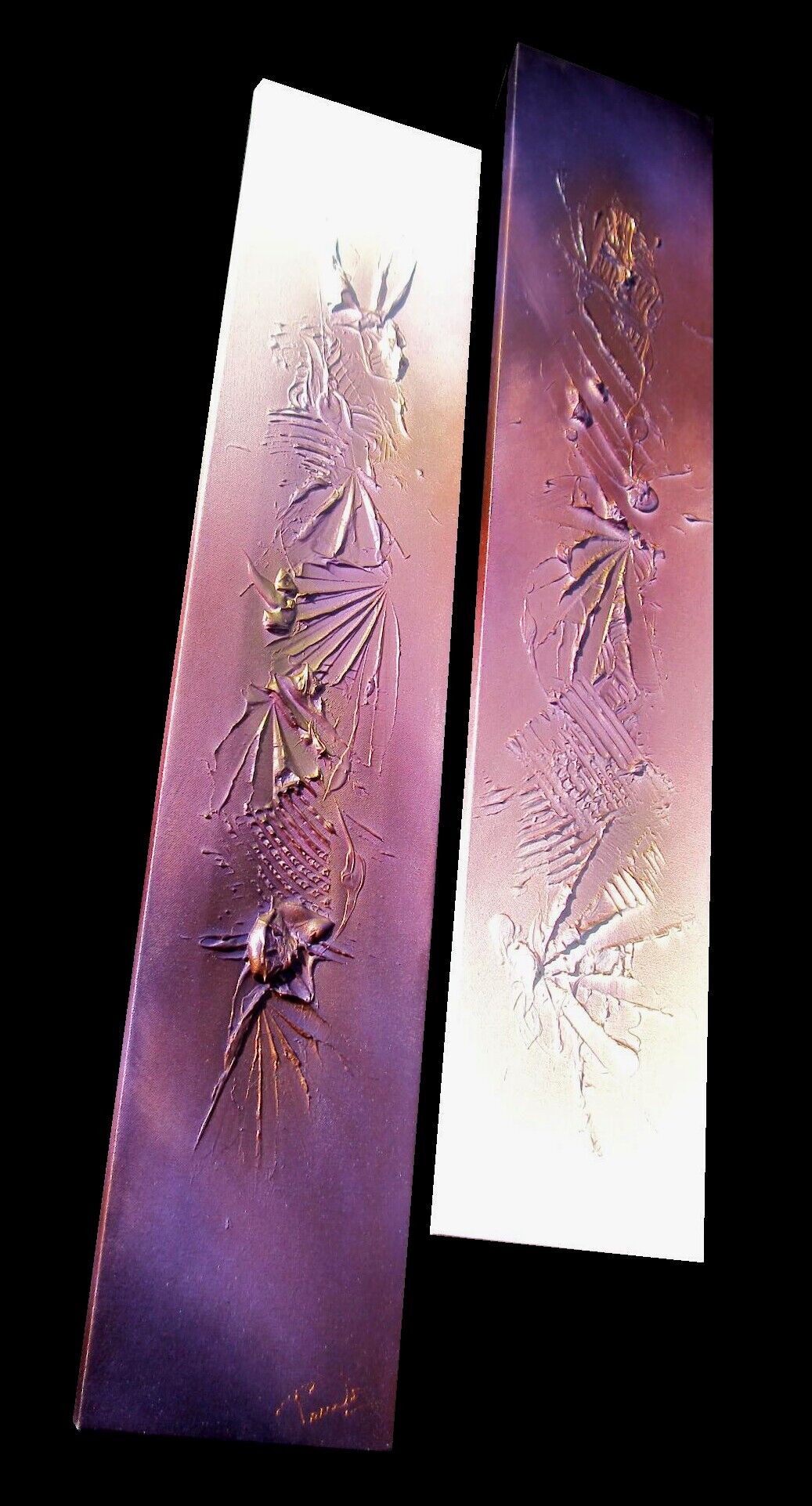 Opera realizzata in tecnica 3d mista ,mediante l'utilizzo di colori acrilici , olii e metallici. L'opera , e' composta 2 tele cm 20 x cm 100 x cm 2 Il prezzo di vendita e' di 210 ,00 euro+spsp