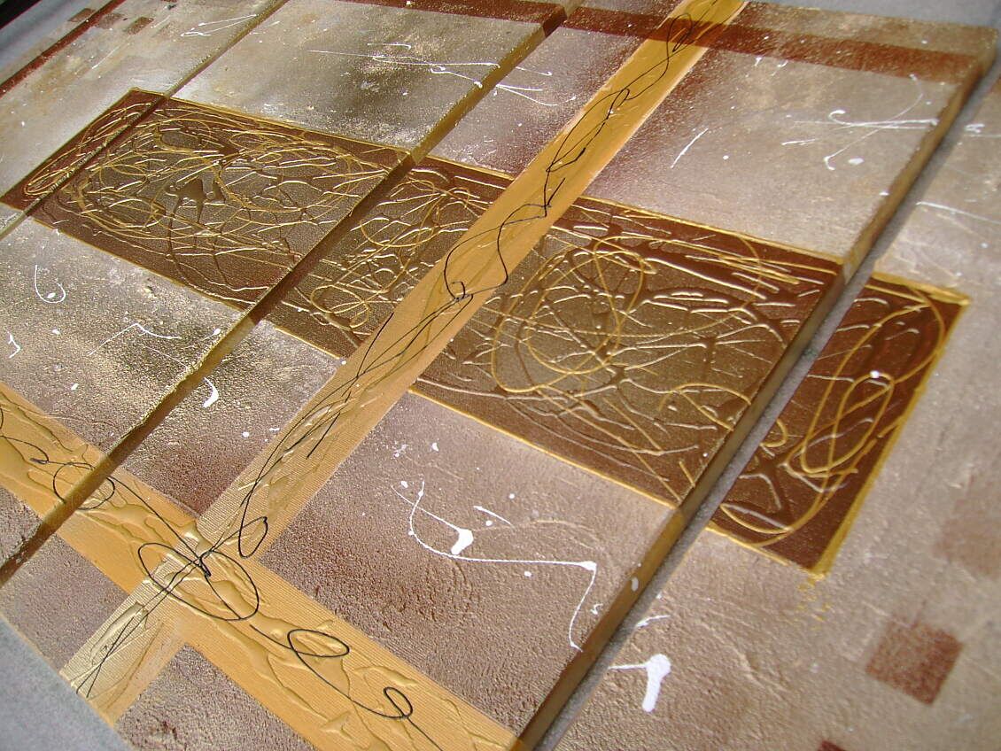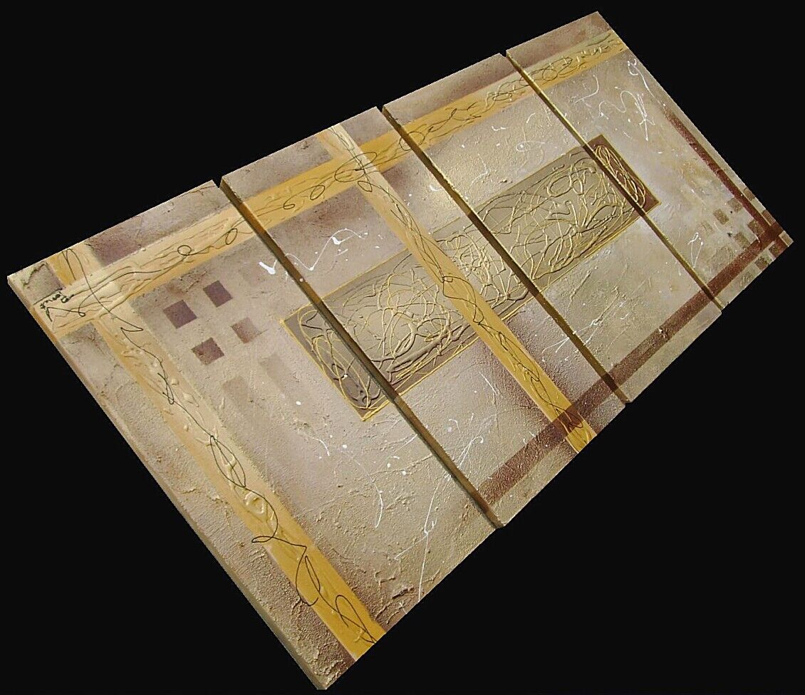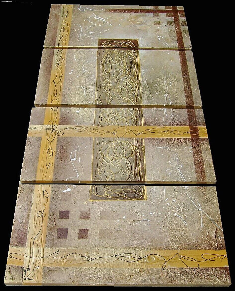Opera realizzata in tecnica 3d mista ,mediante l'utilizzo di colori acrilici , olii e metallici , sabbie, resine e paste acriliche. L'opera , e' composta da 4 tele 30 x 60 x 2 cm. Il prezzo di vendita e' di 210 ,00 euro+spsp