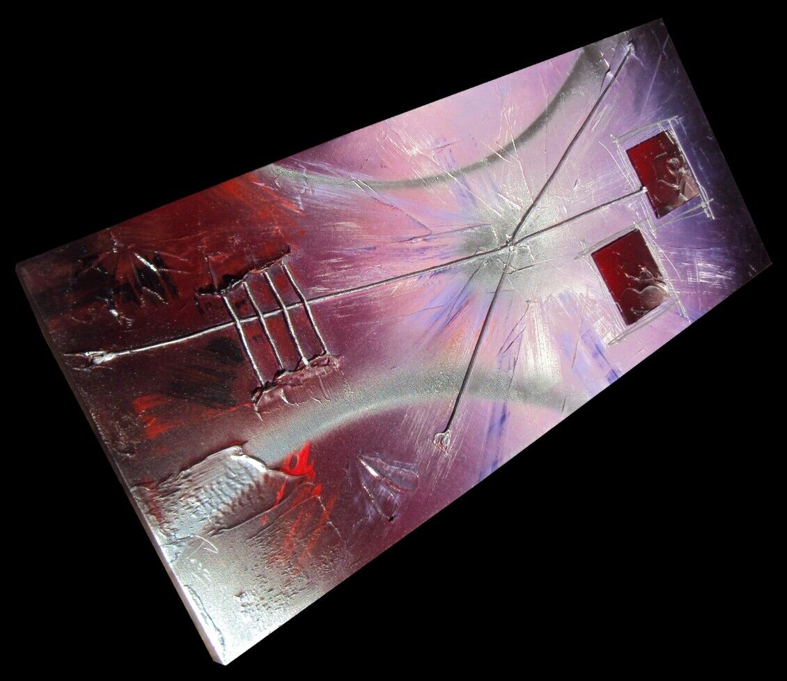 Opera realizzata in tecnica 3D mista ,mediante l'utilizzo di colori acrilici , olii e metallici , paste e resine acriliche, INSERTI . L'opera , e' composta da 1 tela 40 x 100 x 2 cm. Il prezzo di vendita e' di 190 ,00 euro+spsp