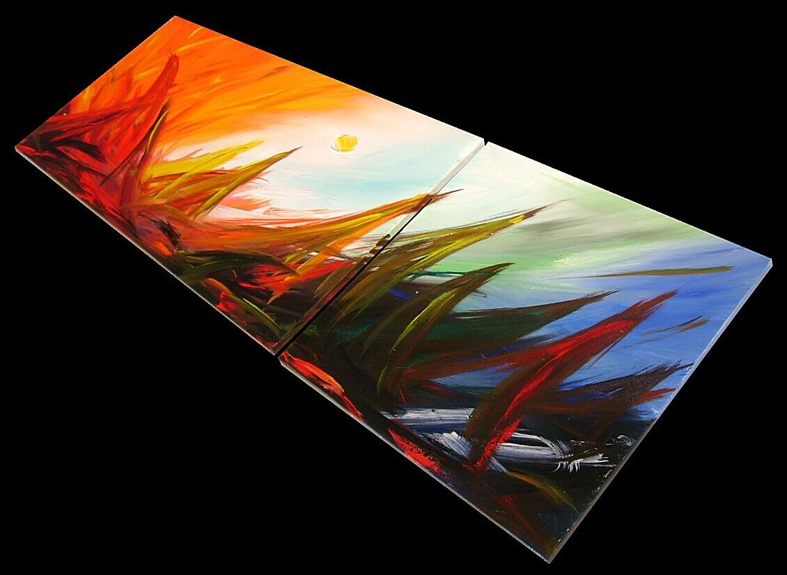 Opera realizzata in tecnica mista ,mediante l'utilizzo di colori acrilici , olii e metallici . L'opera , e' composta da 1 tela 100 x 50 x 2 cm + 1 tela 50 x 50 x 2 cm. Il prezzo di vendita e' di 210 ,00 euro+spsp