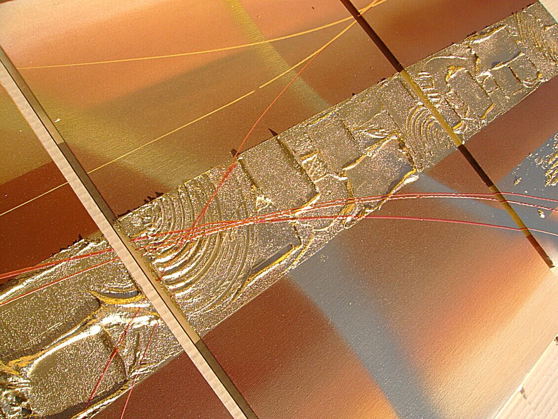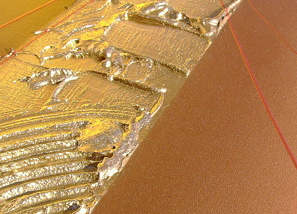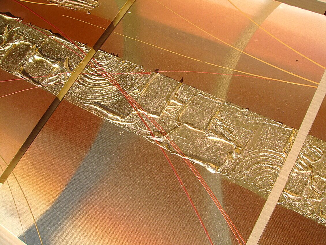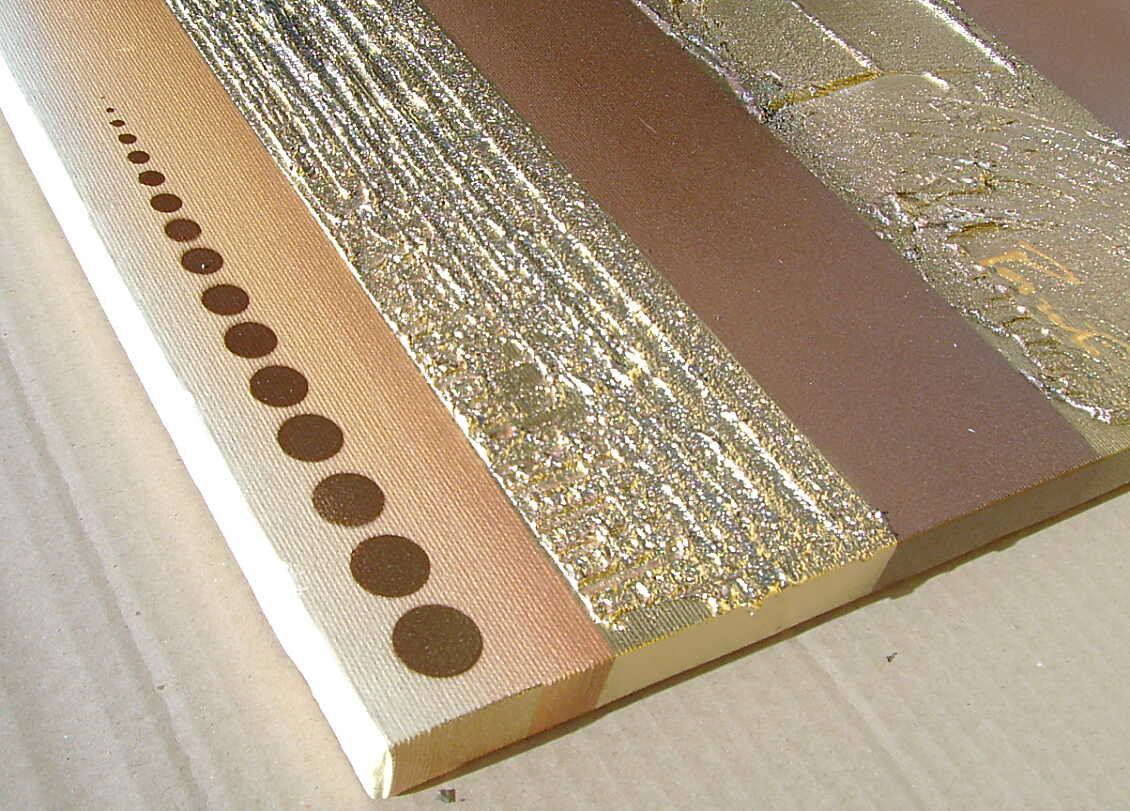 Opera realizzata in tecnica mista 3d polimaterica ,mediante l'utilizzo di colori acrilici , olii e metallici, pigmenti metallici , oro , resine e paste acriliche, limature metalliche . L'opera , e' composta da 2 tele 40 x 50 x 2 cm + 1 tela 40 x 60 x 2 cm. Il prezzo di vendita e' di 210 ,00 euro+spsp