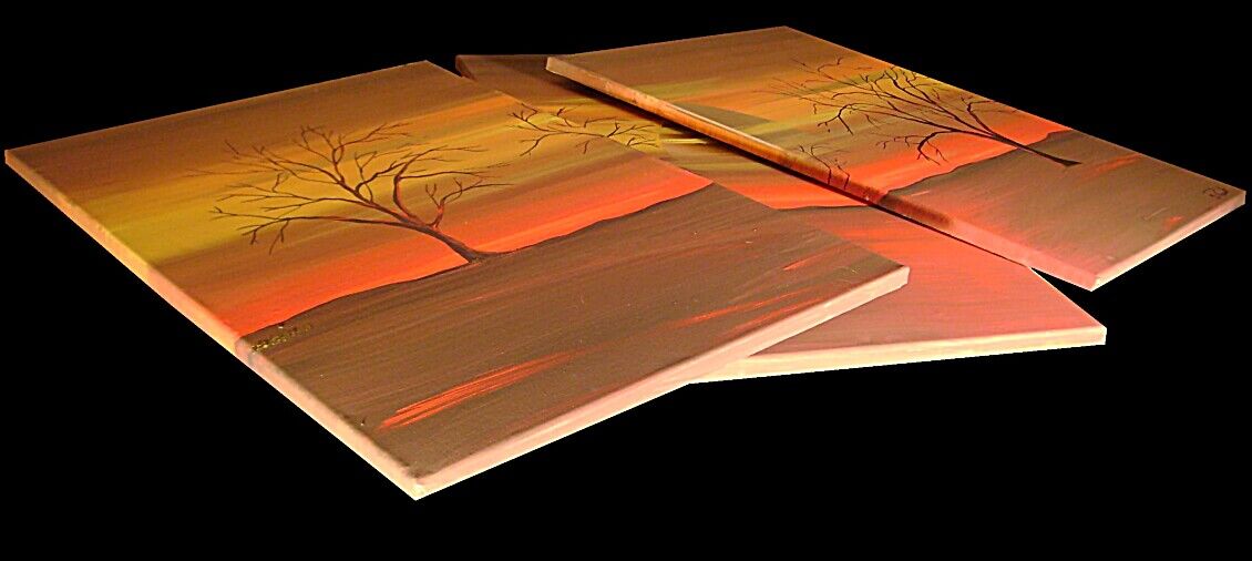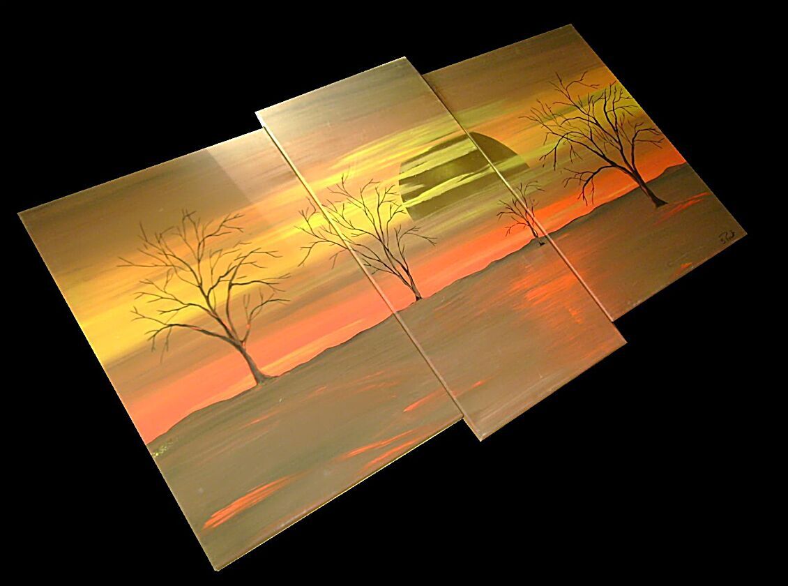 E' stata utilizzata tecnica mista , acrilici e metallici su tele - L'opera e' composta da 2 tele 50 x 70 x 2 cm + 1 tela 40 x 80 x 2 cm - 190 euro+sp sp