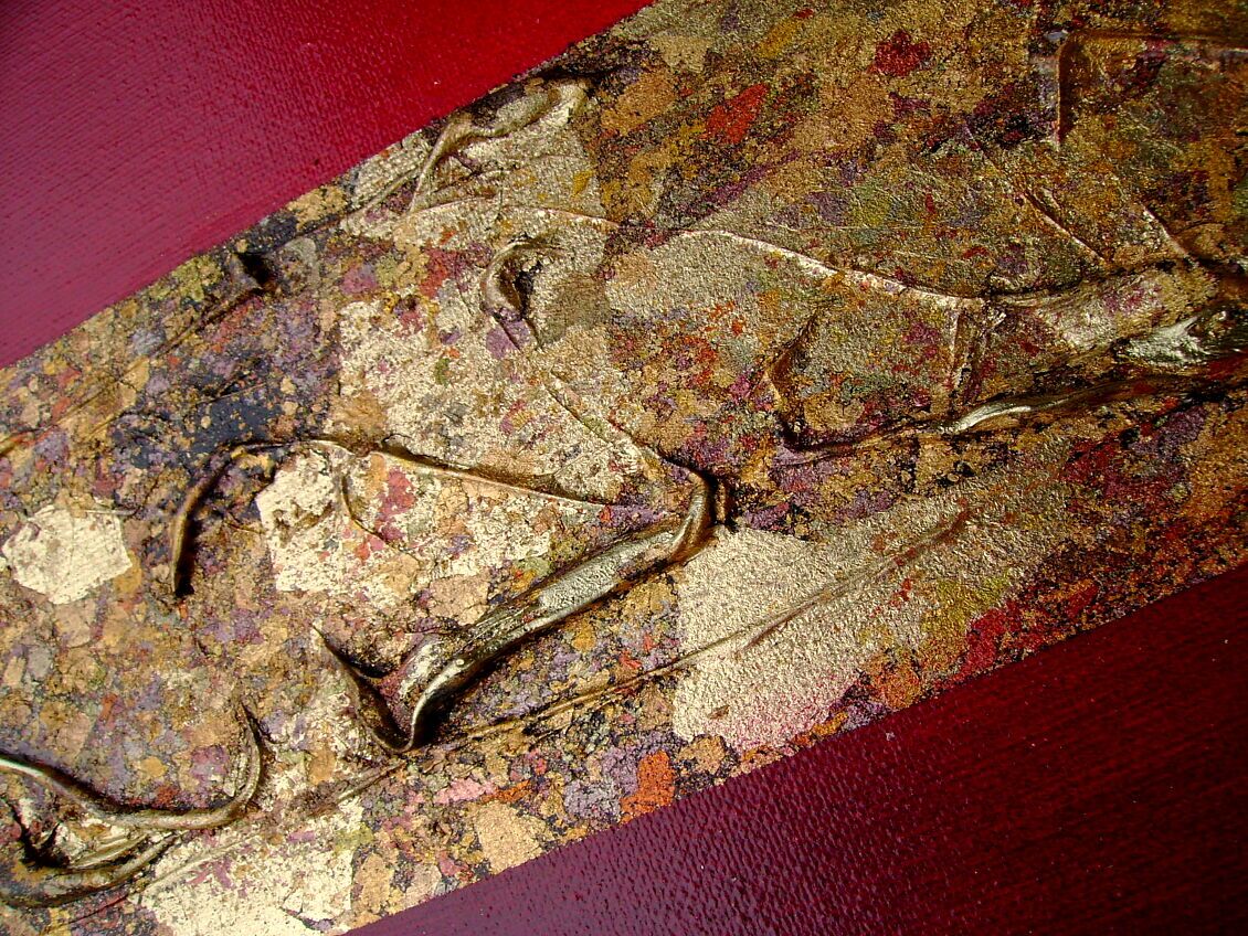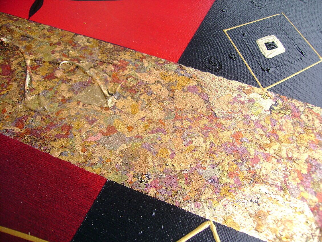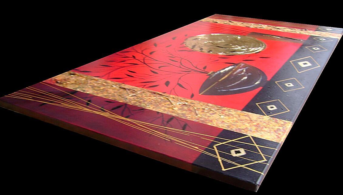 Opera realizzata in tecnica mista ,mediante l'utilizzo di colori acrilici , olii e metallici , paste acriliche . L'opera , e' composta da 1 tela 140 x 70 x 2 cm . Il prezzo di vendita e' di 270 ,00 euro+spsp