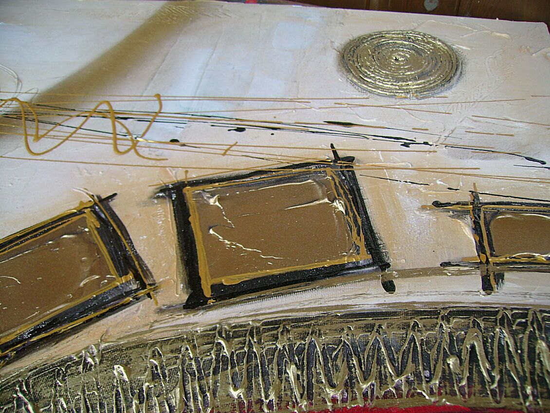 Opera realizzata in tecnica mista ,mediante l'utilizzo di colori acrilici , olii e metallici , paste acriliche . L'opera , e' composta da 1 tela 80 x 80 x 2 cm . Il prezzo di vendita e' di 190 ,00 euro+spsp