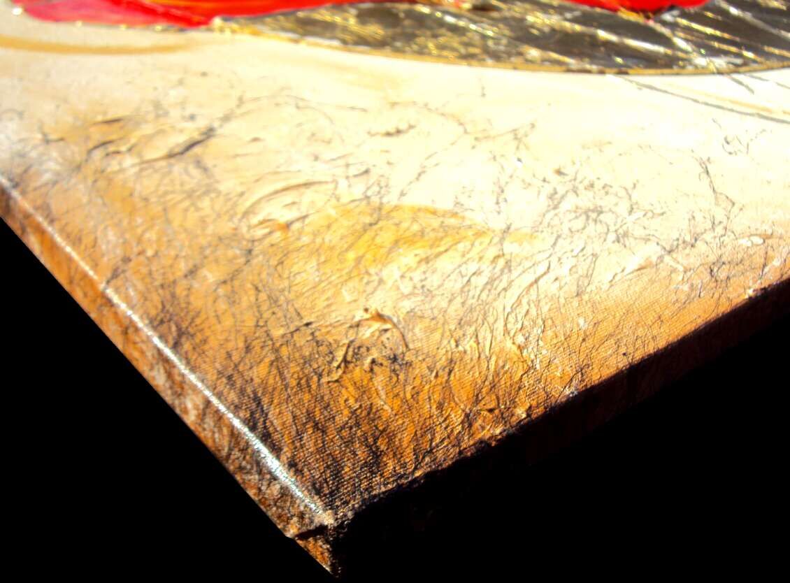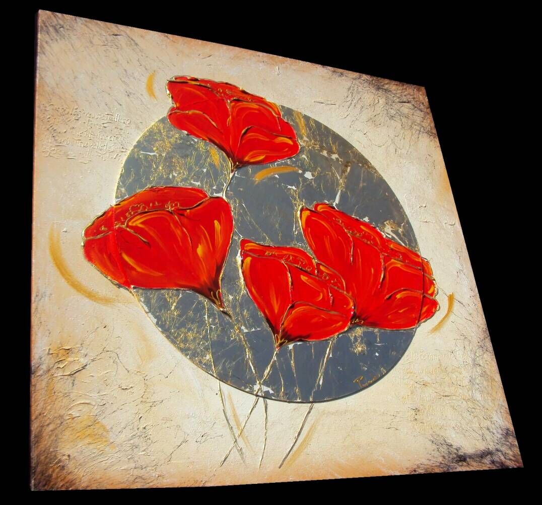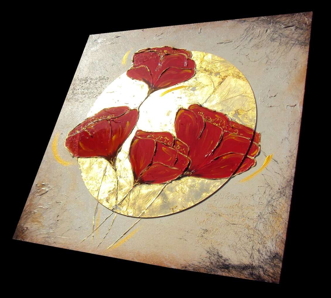 Opera realizzata in tecnica mista ,mediante l'utilizzo di colori acrilici , olii e metallic, INSERTI , paste acriliche, foglia simil-oro . L'opera , e' composta da 1 tela cm 100x100x2 . Il prezzo di vendita e' di 260 ,00 euro+spsp