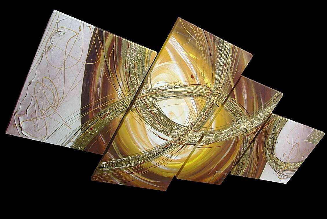 Opera realizzata in tecnica mista ,mediante l'utilizzo di colori acrilici , olii e metallici , paste acriliche . L'opera , e' composta da 1 tela 40 x 50 x 2 + 1 tela 40 x 80 x 2 + 1 tela 30 x 60 x 2 + 1 tela 50 x 40 x 2 . Il prezzo di vendita e' di 220 ,00 euro+spsp