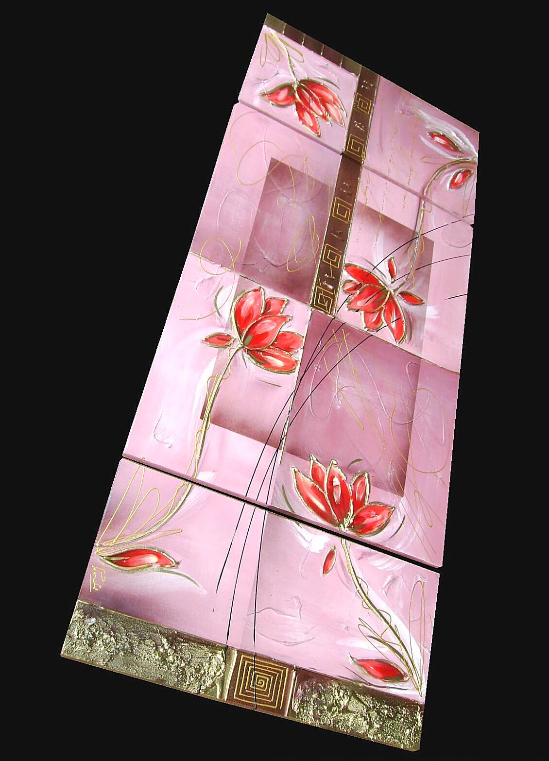 Opera realizzata in tecnica mista ,mediante l'utilizzo di colori acrilici , olii e metallici , paste acriliche . L'opera , e' composta da 1 tela 80 x 60 x 2 cm + 2 tele 30 x 60 x 2 cm . Il prezzo di vendita e' di 230 ,00 euro+spsp