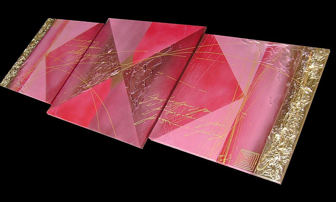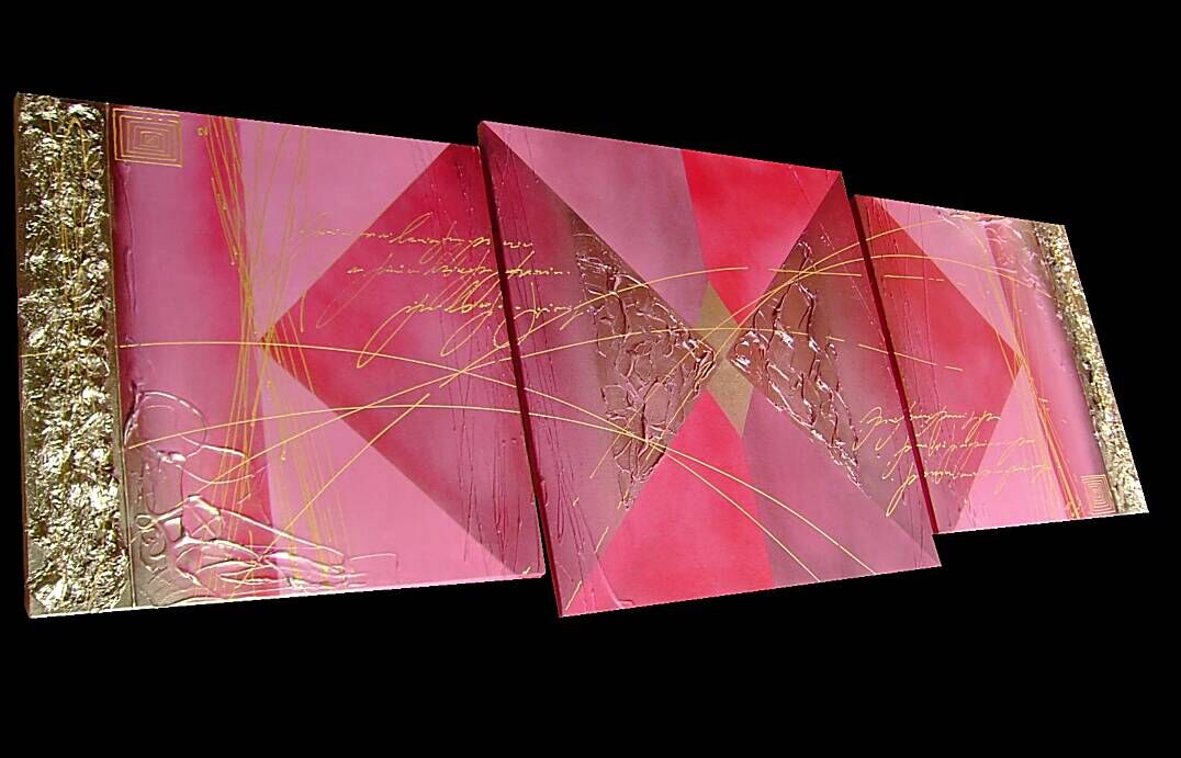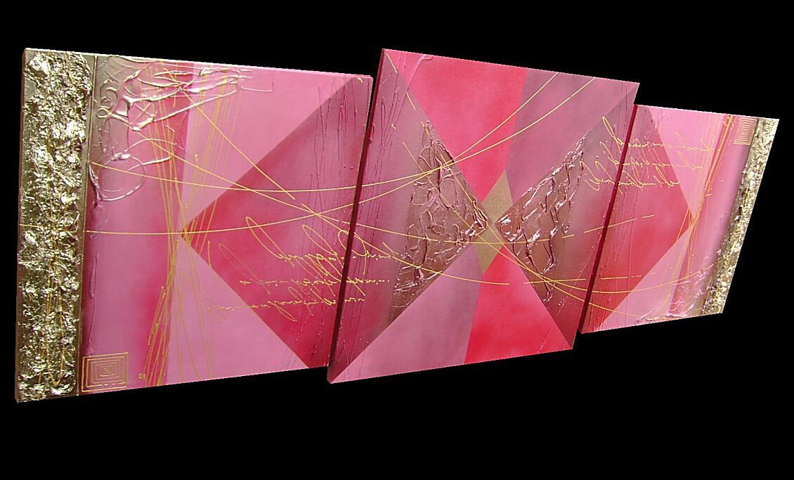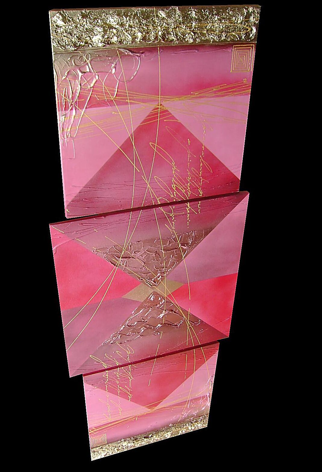 Opera realizzata in tecnica mista ,mediante l'utilizzo di colori acrilici , olii e metallici , paste acriliche . L'opera , e' composta da 1 tela 70 x 70 x 2 + 2 tele 60 x 60 x 2 cm . Il prezzo di vendita e' di 230 ,00 euro+spsp