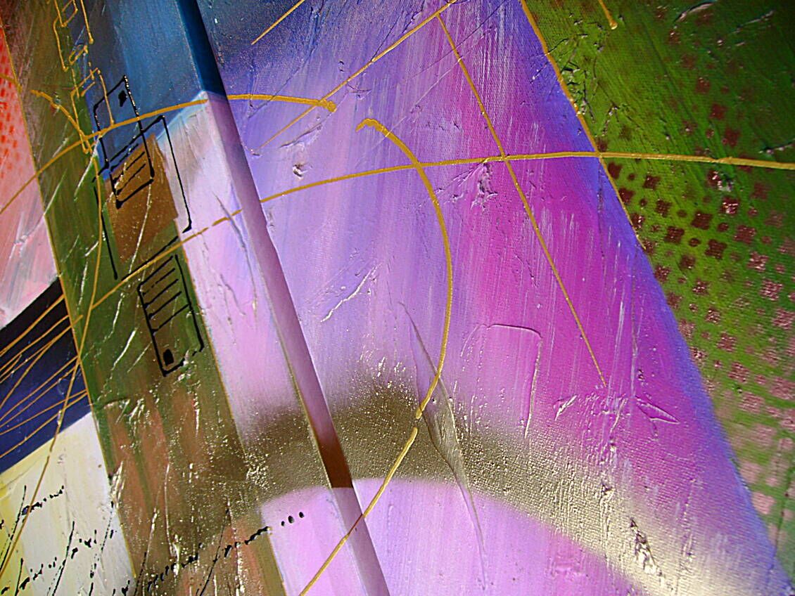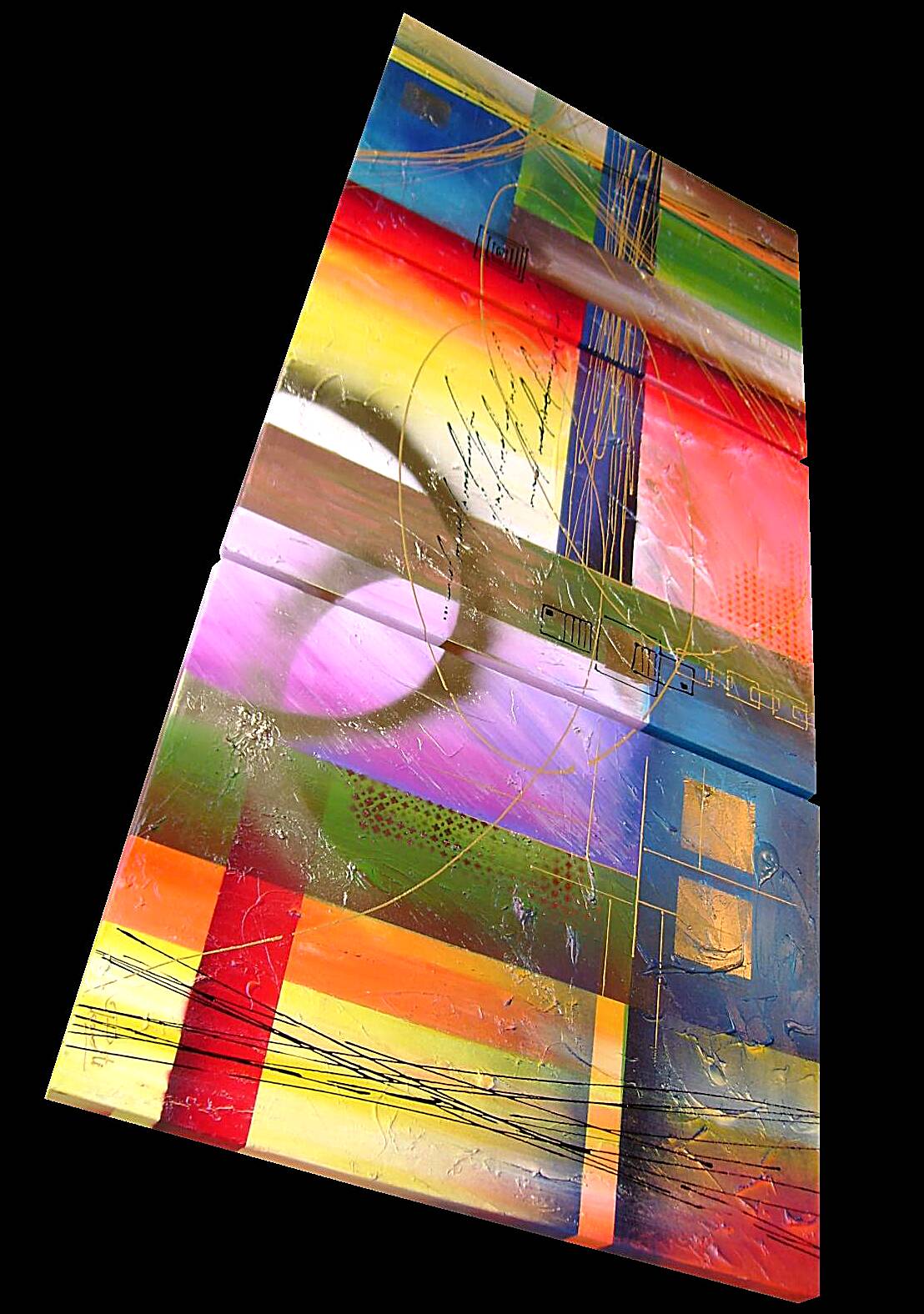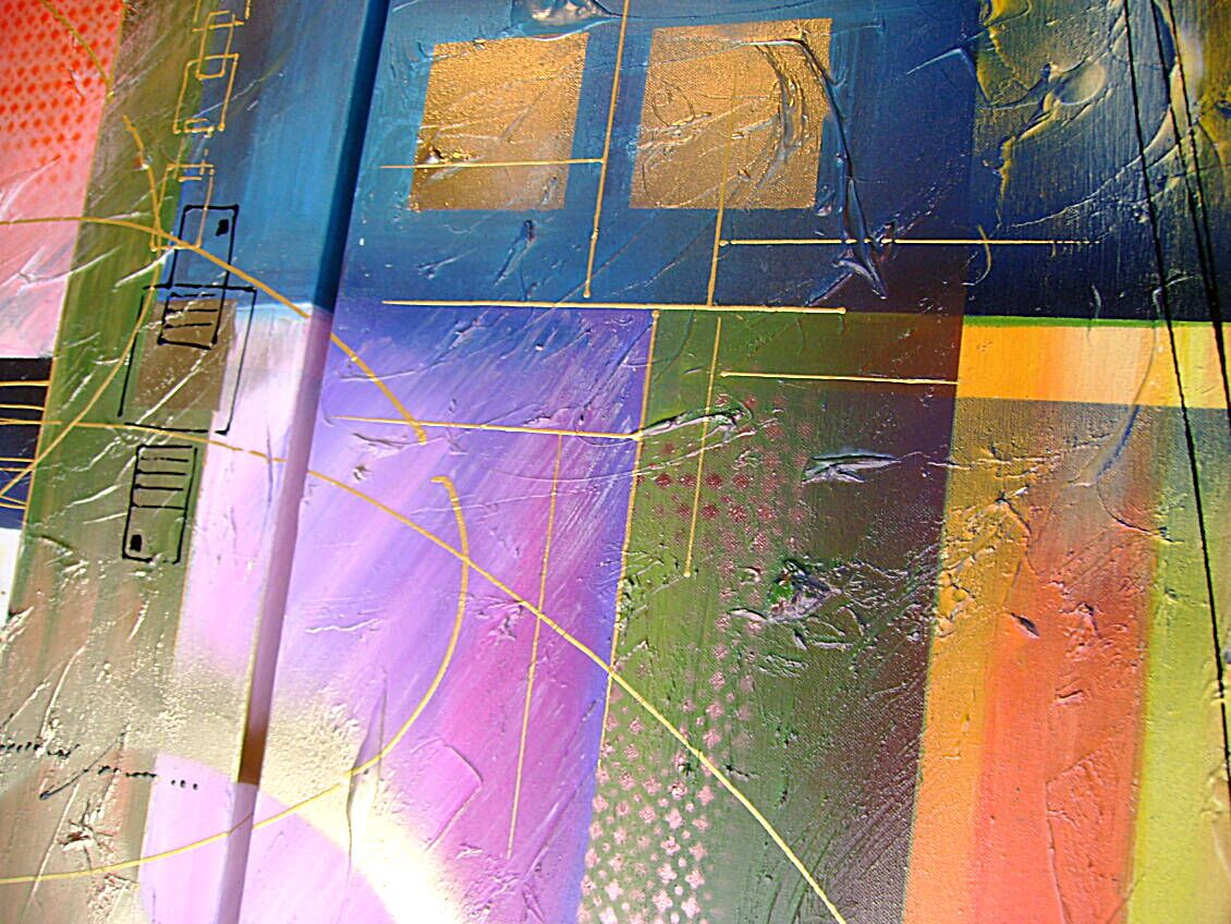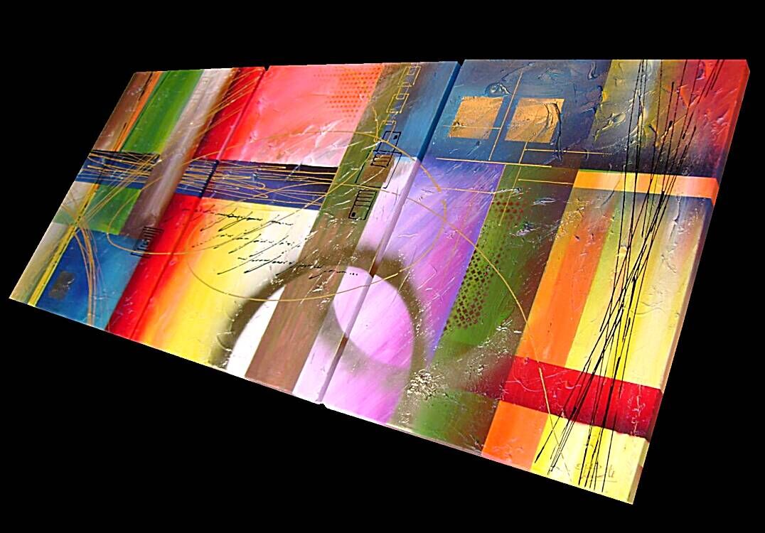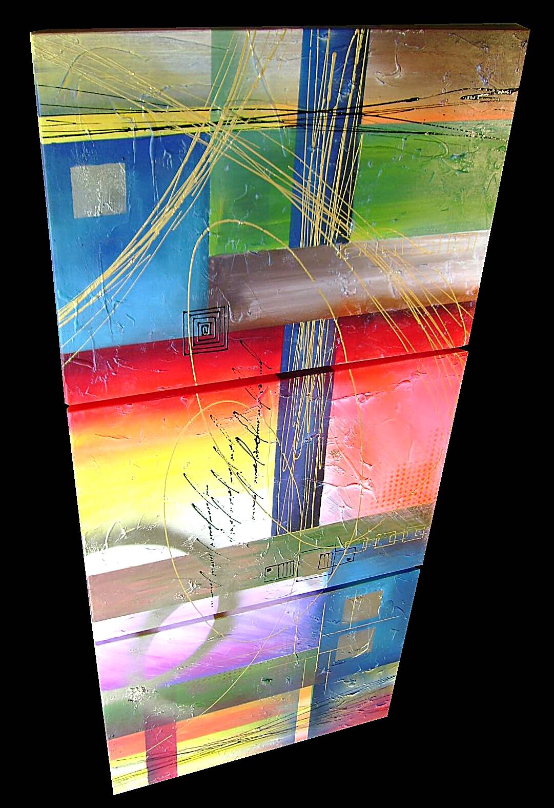Opera realizzata in tecnica mista ,mediante l'utilizzo di colori acrilici , olii e metallici , paste acriliche . L'opera , e' composta da 3 tele 60 x 80 x 4 cm . Il prezzo di vendita e' di 290 ,00 euro+spsp