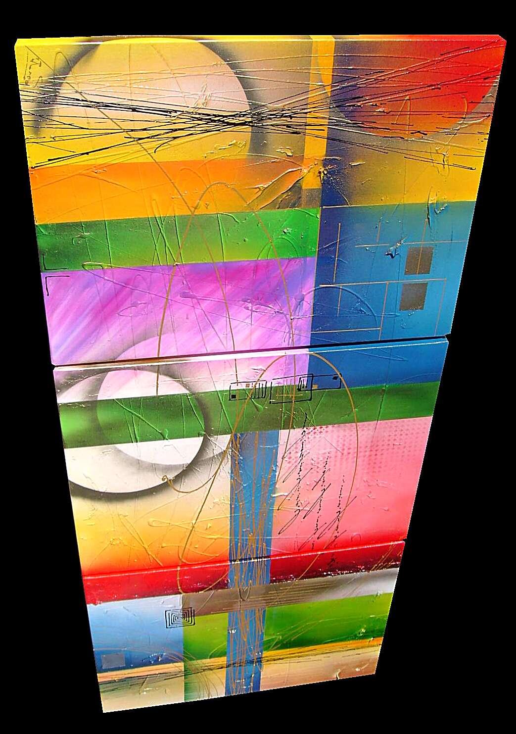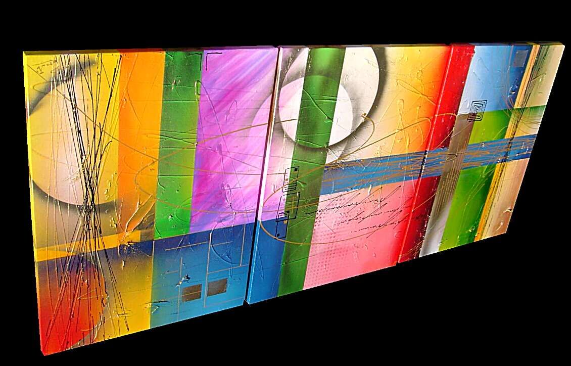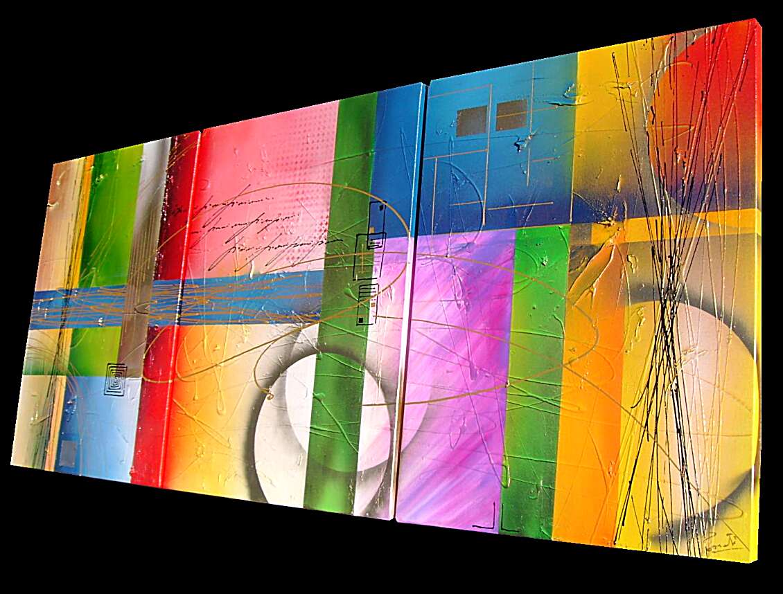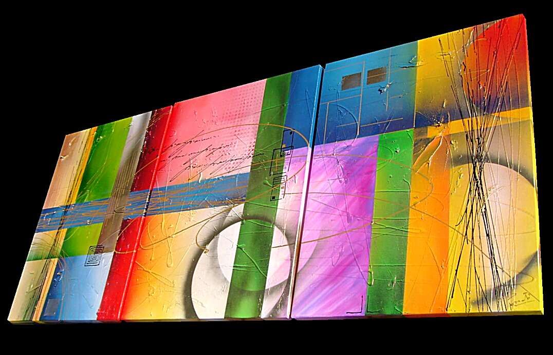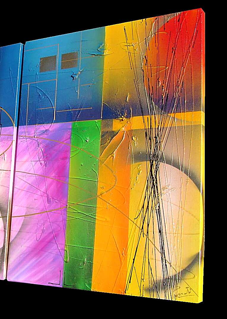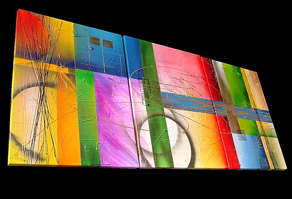 Opera realizzata in tecnica mista ,mediante l'utilizzo di colori acrilici , olii e metallici , paste acriliche . L'opera , e' composta da 3 tele 60 x 80 x 4 cm . Il prezzo di vendita e' di 320 ,00 euro+spsp