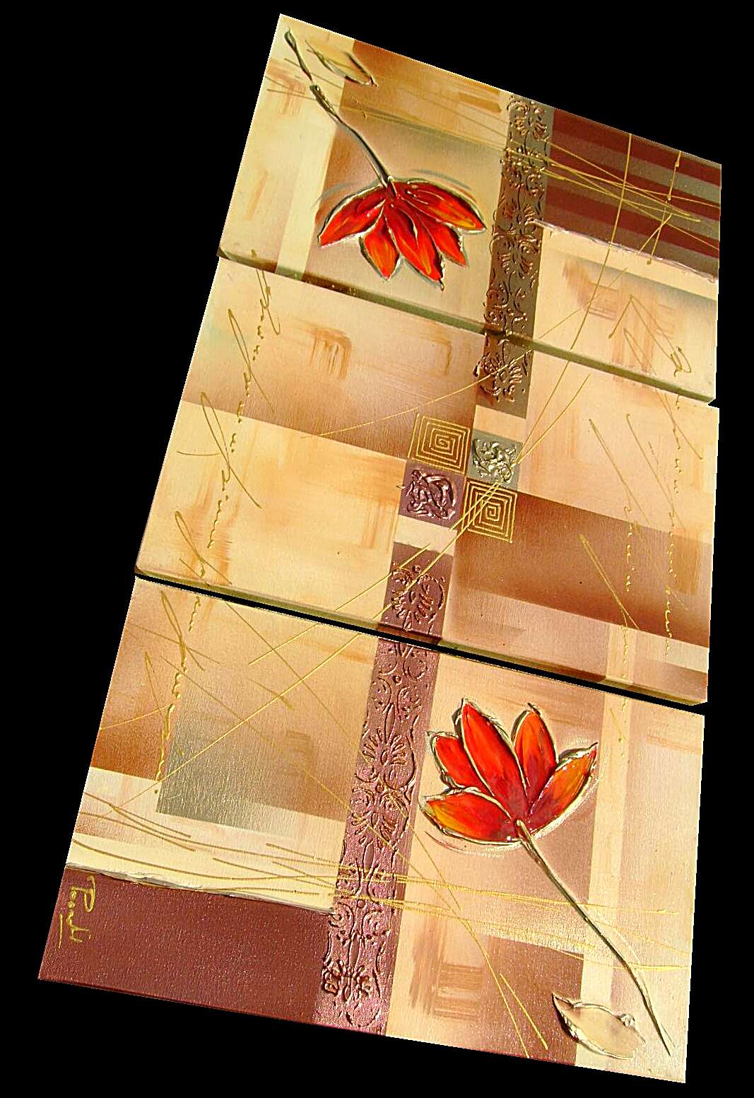 Opera realizzata in tecnica mista ,mediante l'utilizzo di colori acrilici , olii e metallici , paste acriliche , resine effetto cristallo. L'opera , e' composta da 3 tele 30 x 60 x 2 cm . Il prezzo di vendita e' di 190 ,00 euro+spsp