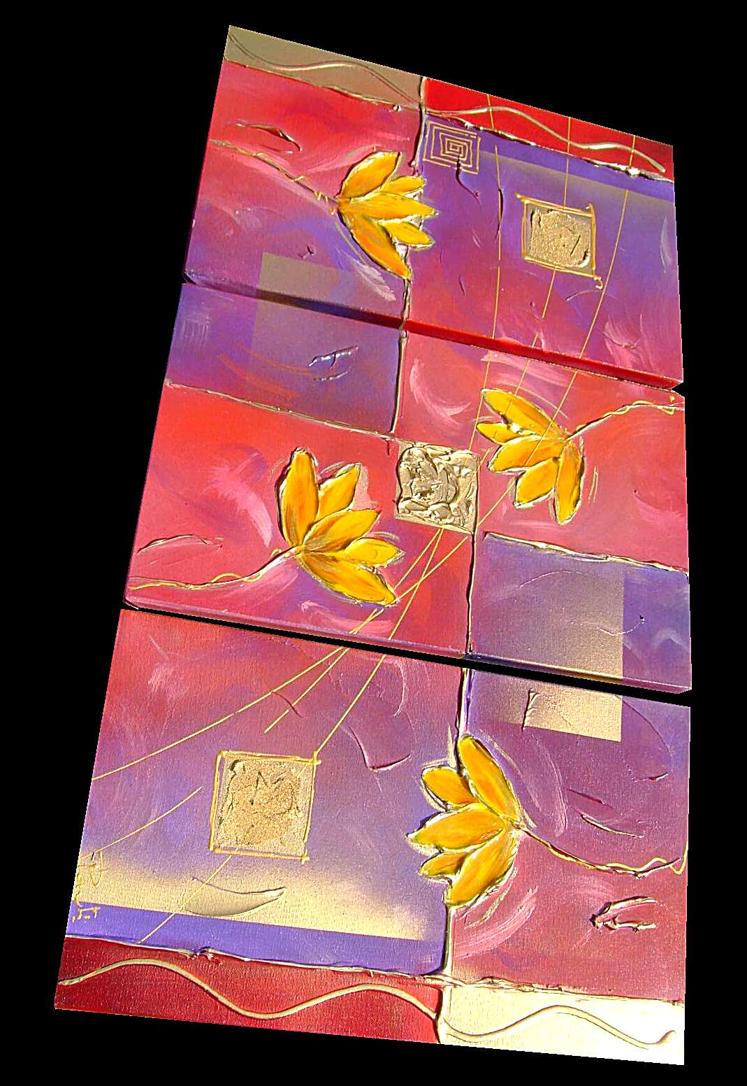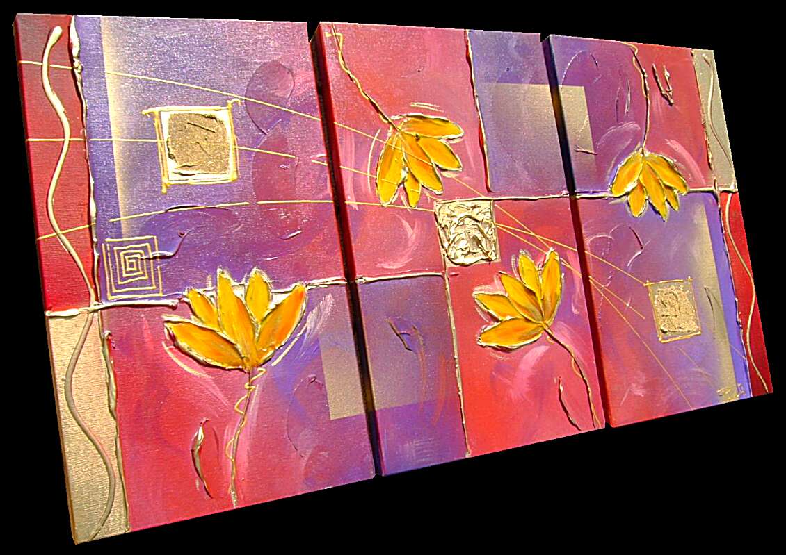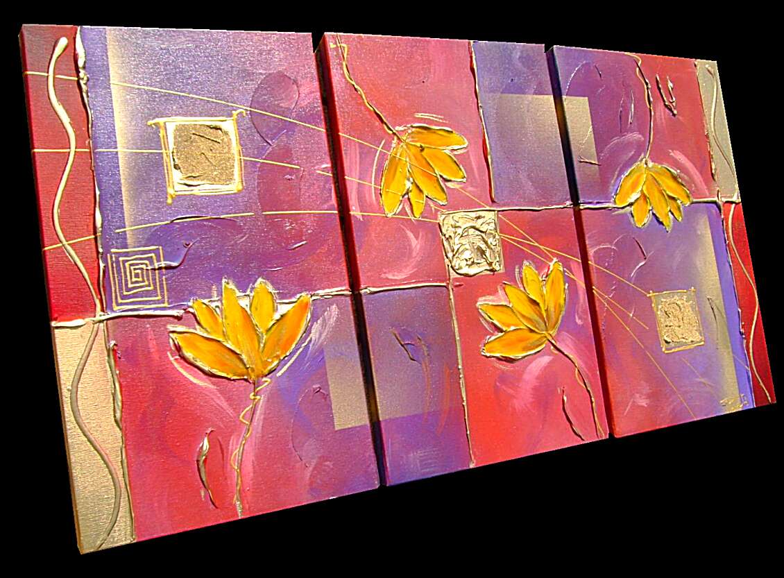 Opera realizzata in tecnica mista ,mediante l'utilizzo di colori acrilici , olii e metallici , paste acriliche, resine trasparenti effetto cristallo . L'opera , e' composta da 3 tele 30 x 60 x 2 cm . Il prezzo di vendita e' di 190 ,00 euro+spsp