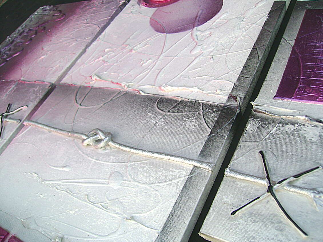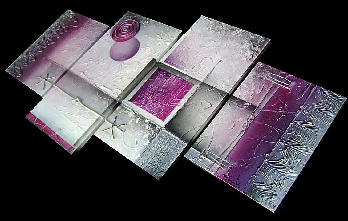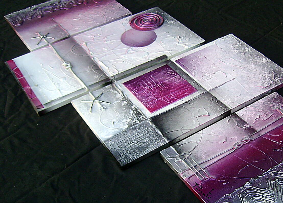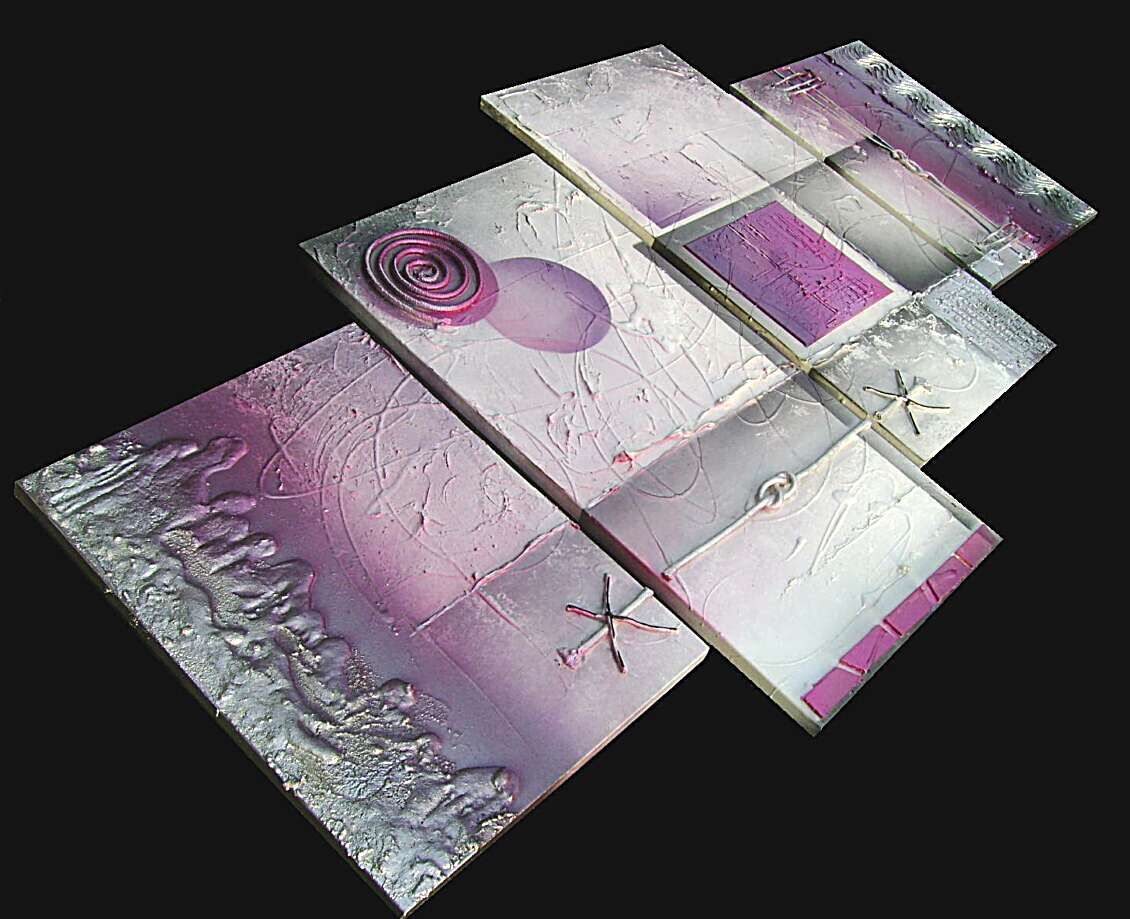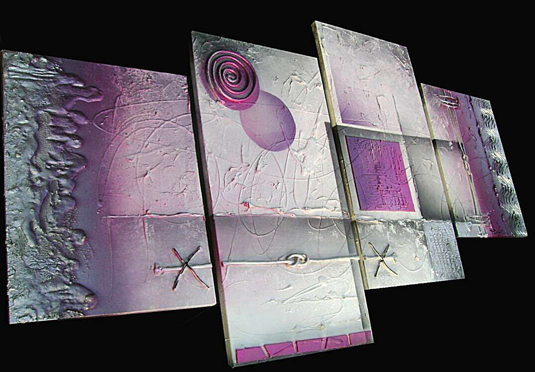 Opera realizzata in tecnica mista ,mediante l'utilizzo di colori acrilici , olii e metallici , paste acriliche . L'opera , e' composta da 2 tele 30 x 40 x 2 cm + 2 tele 30 x 60 x 2 cm . Il prezzo di vendita e' di 230 ,00 euro+spsp