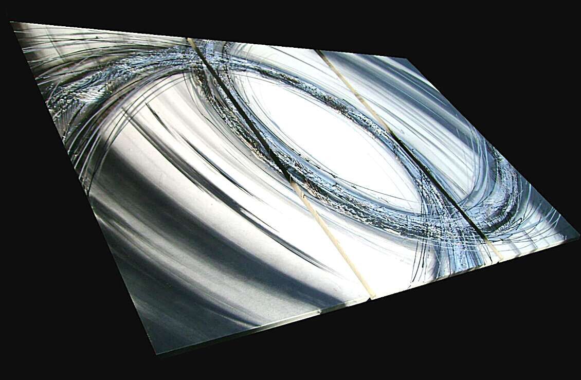 Opera realizzata in tecnica mista ,mediante l'utilizzo di colori acrilici , olii e metallici , paste acriliche . L'opera , e' composta da 3 tele 40 x 80 x 2 cm . Il prezzo di vendita e' di 220 ,00 euro+spsp
