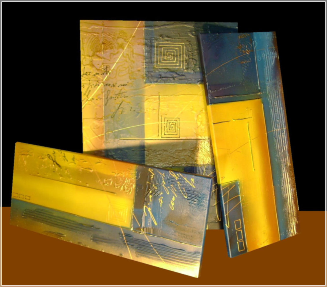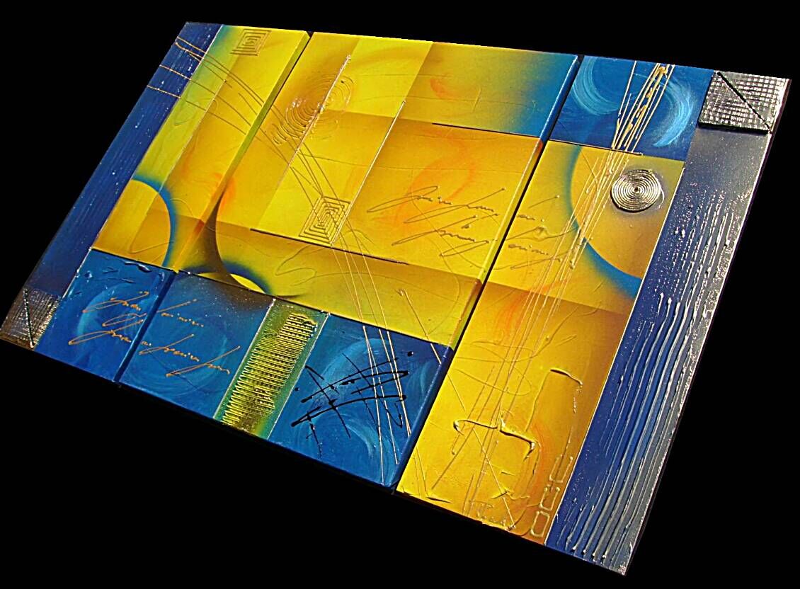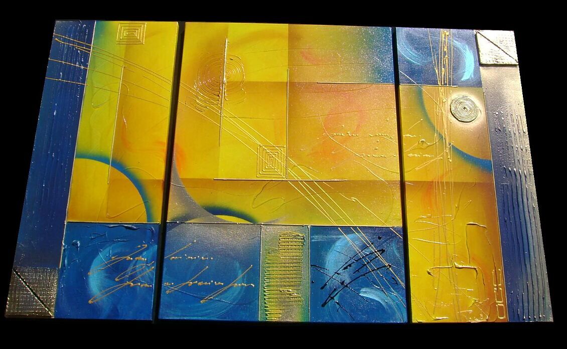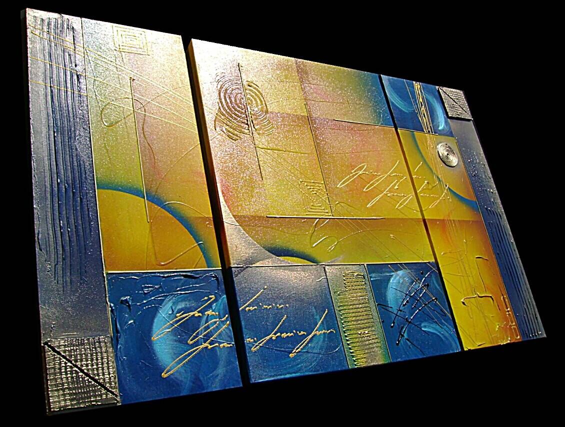 OPERA COMPOSTA DA 1 TELA 50 X 70 X 2 CM + 2 TELE 30 X 70 X 2 CM - E' STATA UTILIZZATA TECNICA 3D +ACRILICI METALLICI E OLI - 190 EURO + SP SP
