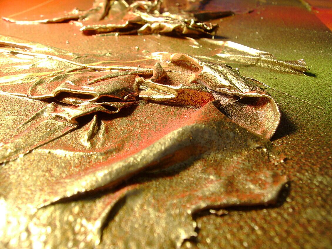 E' STATA UTILIZZATA TECNICA 3D OLII+ACRILICI+ METALLICI+INSERTI+ FOGLIE D'ORO -OPERA COMPOSTA DA 1 TELA 60X 80 X 2 CM - 190 EURO+SPSP
