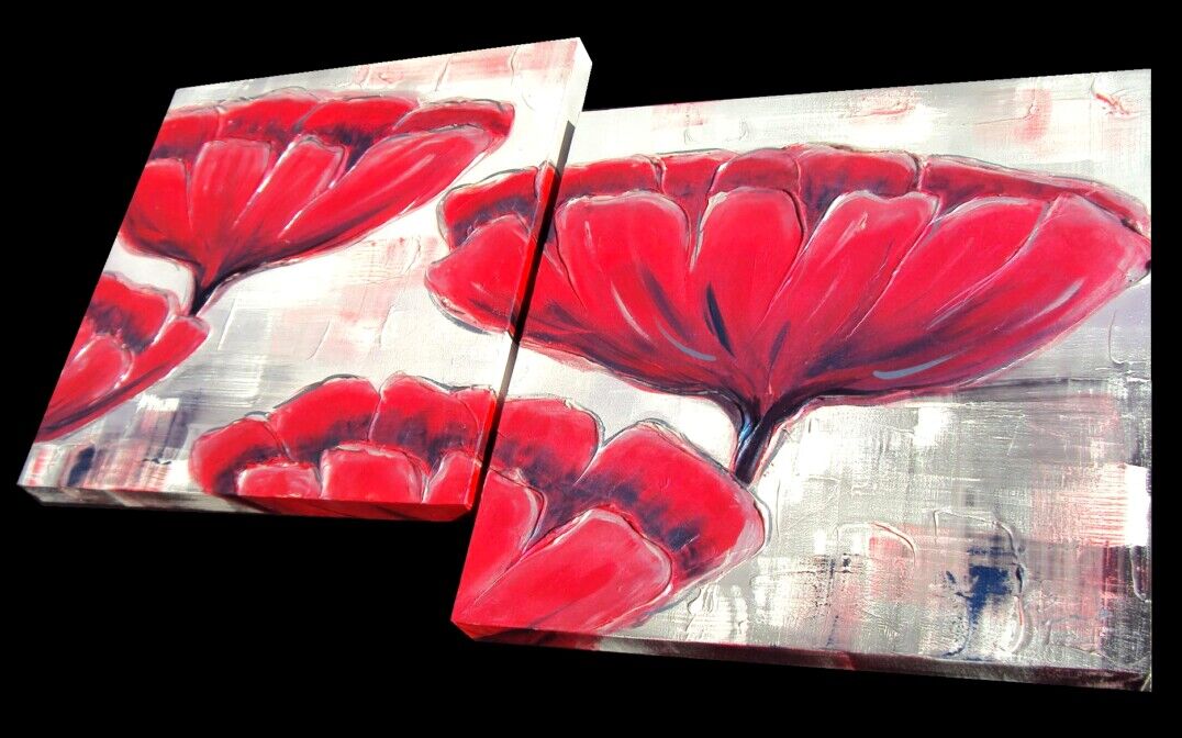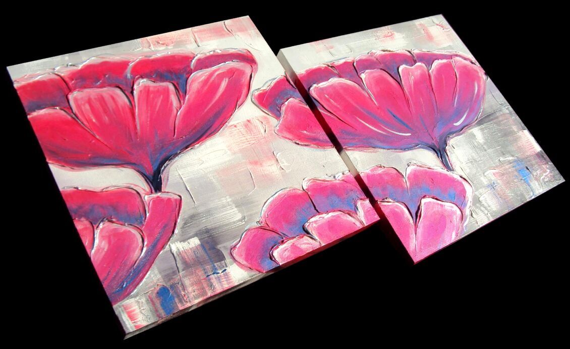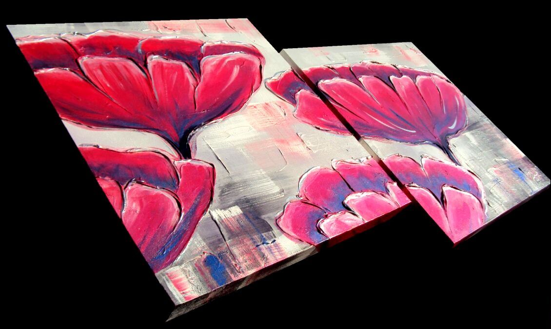 Opera realizzata in tecnica mista ,mediante l'utilizzo di colori acrilici , olii e metallici , paste acriliche , inserti . L'opera , e' composta da 2 tele 50 x 50 x 4 cm . Il prezzo di vendita e' di 240 ,00 euro+spsp