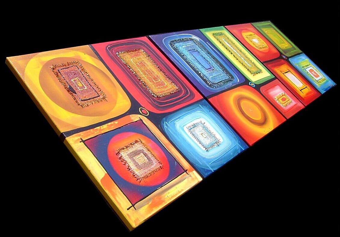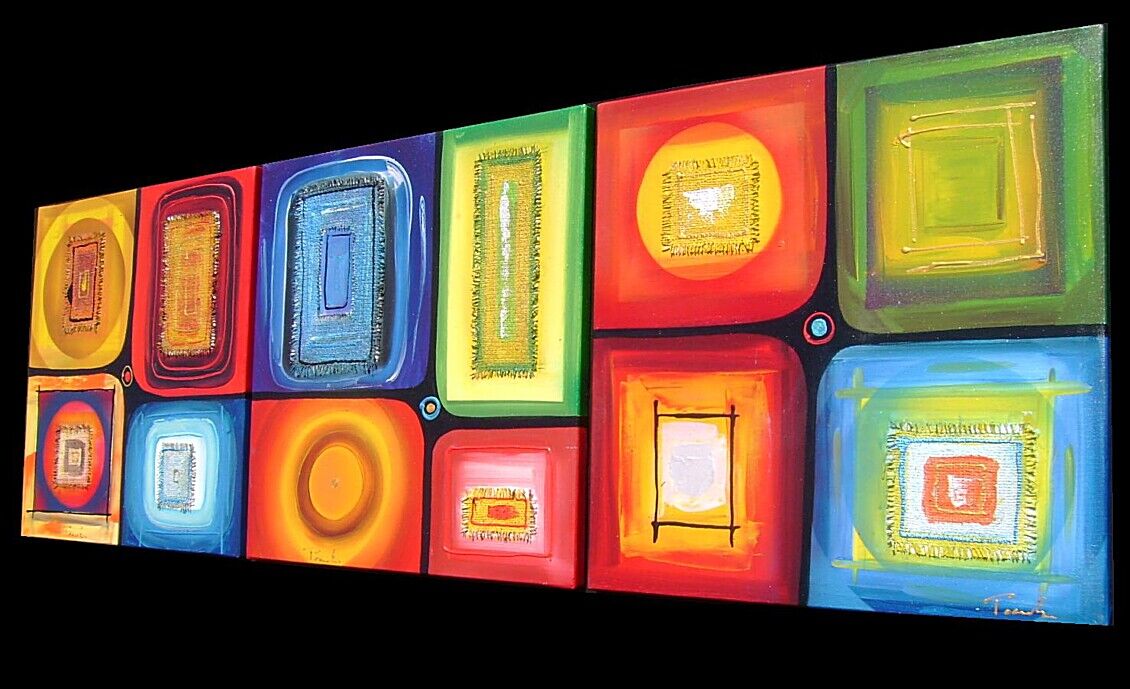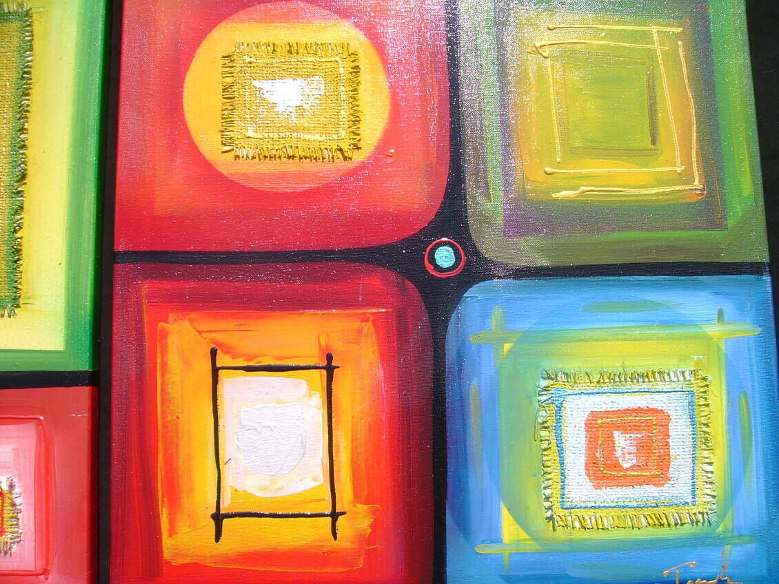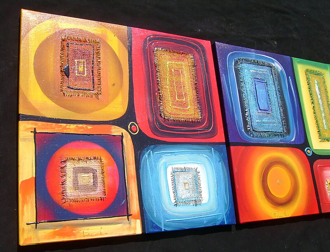 OPERA REALIZZATA TRAMITE TECNICA MISTA OLII+ACRILICI+METALLICI- INSERTI - OPERA COMPOSTA DA 3 TELE 50 X 50 X 2 CM - 220,00 EURO +SPSP