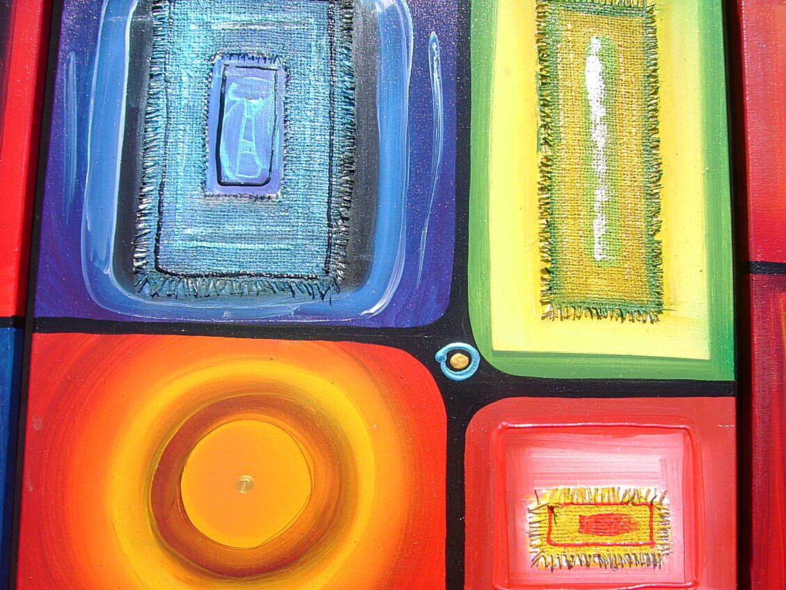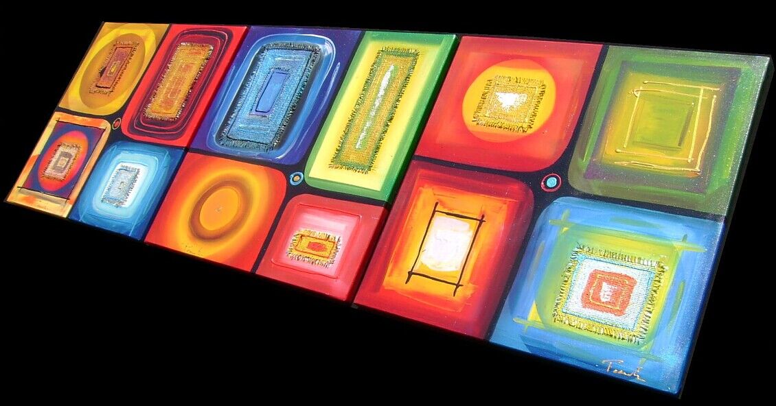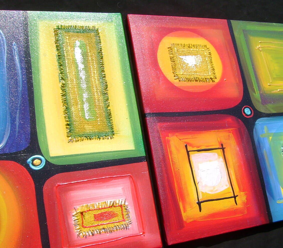 OPERA REALIZZATA TRAMITE TECNICA MISTA OLII+ACRILICI+METALLICI- INSERTI - OPERA COMPOSTA DA 3 TELE 50 X 50 X 2 CM - 220,00 EURO +SPSP