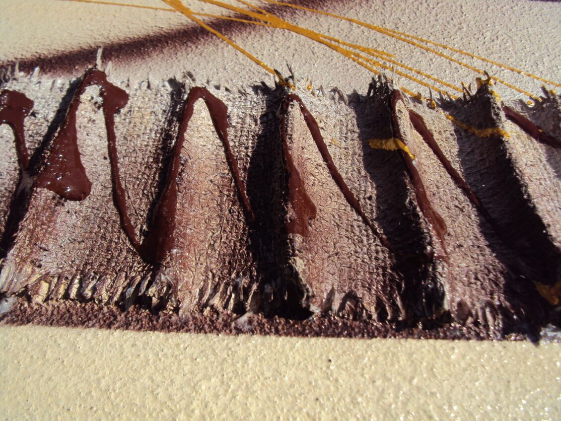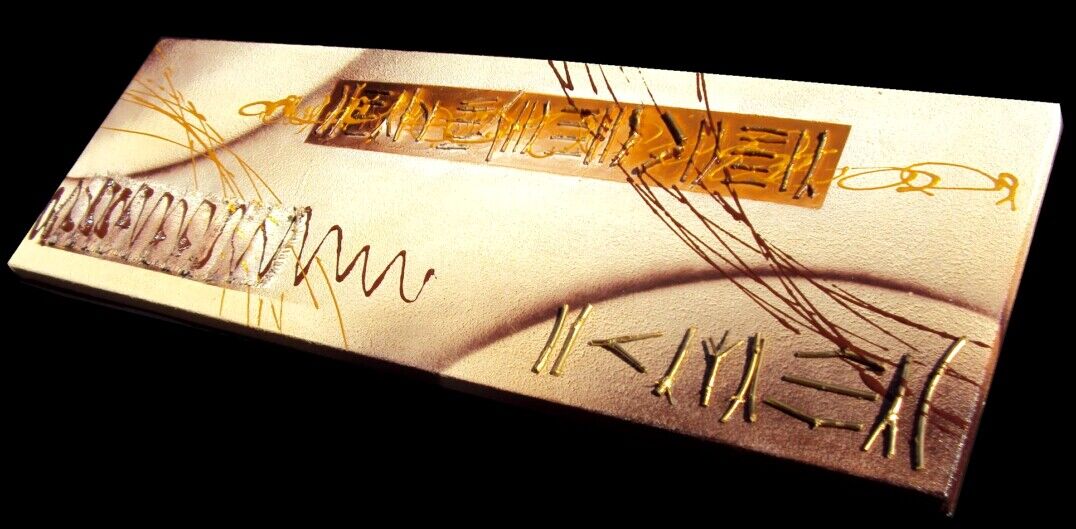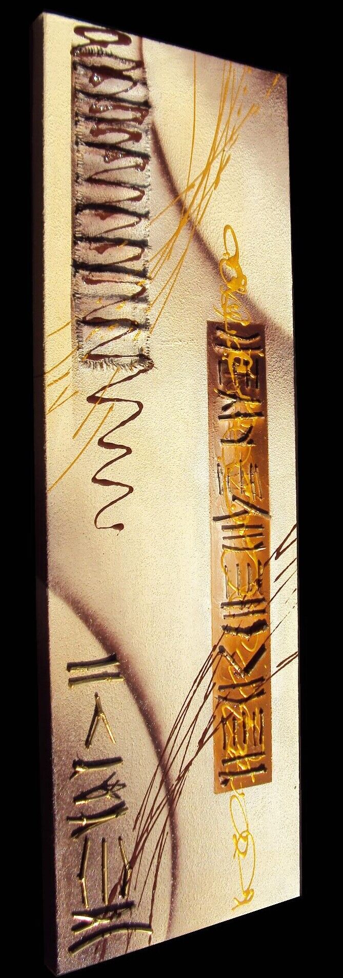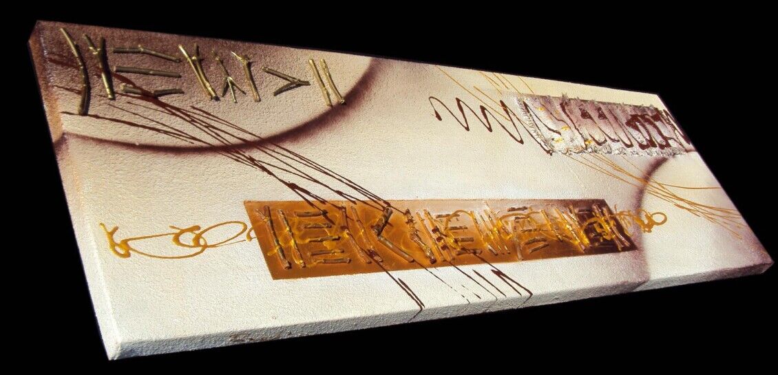 Opera realizzata in tecnica mista TRIDIMENSIONALE , mediante utilizzo di colori acrilici , pigmenti metallici , colori ad olio , paste acriliche , paste epossidiche, sabbie, legno, canapa. L'opera e' composta 1 tela 40 x 120 x 4 cm . Il prezzo di vendita e' di 260 ,00 euro+spsp