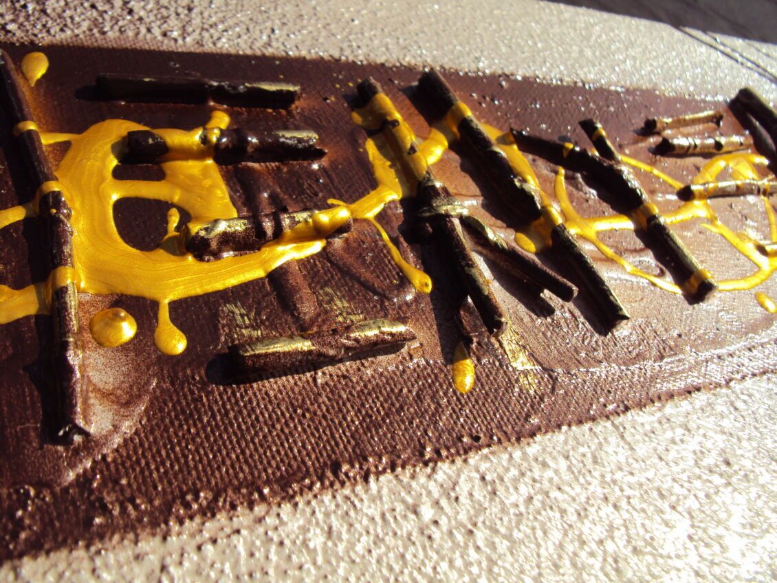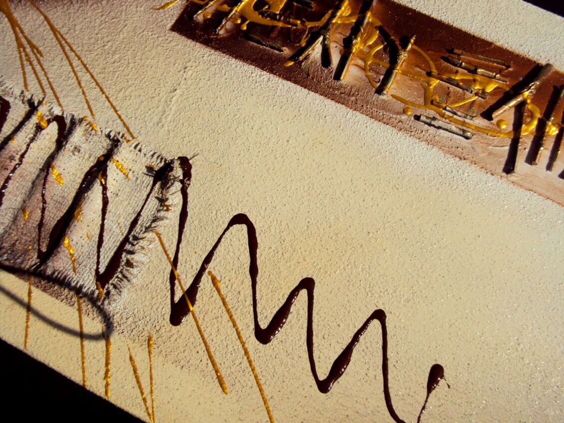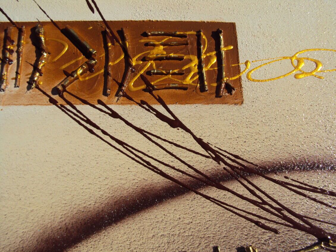Opera realizzata in tecnica mista TRIDIMENSIONALE , mediante utilizzo di colori acrilici , pigmenti metallici , colori ad olio , paste acriliche , paste epossidiche, sabbie, legno, canapa. L'opera e' composta 1 tela 40 x 120 x 4 cm . Il prezzo di vendita e' di 260 ,00 euro+spsp