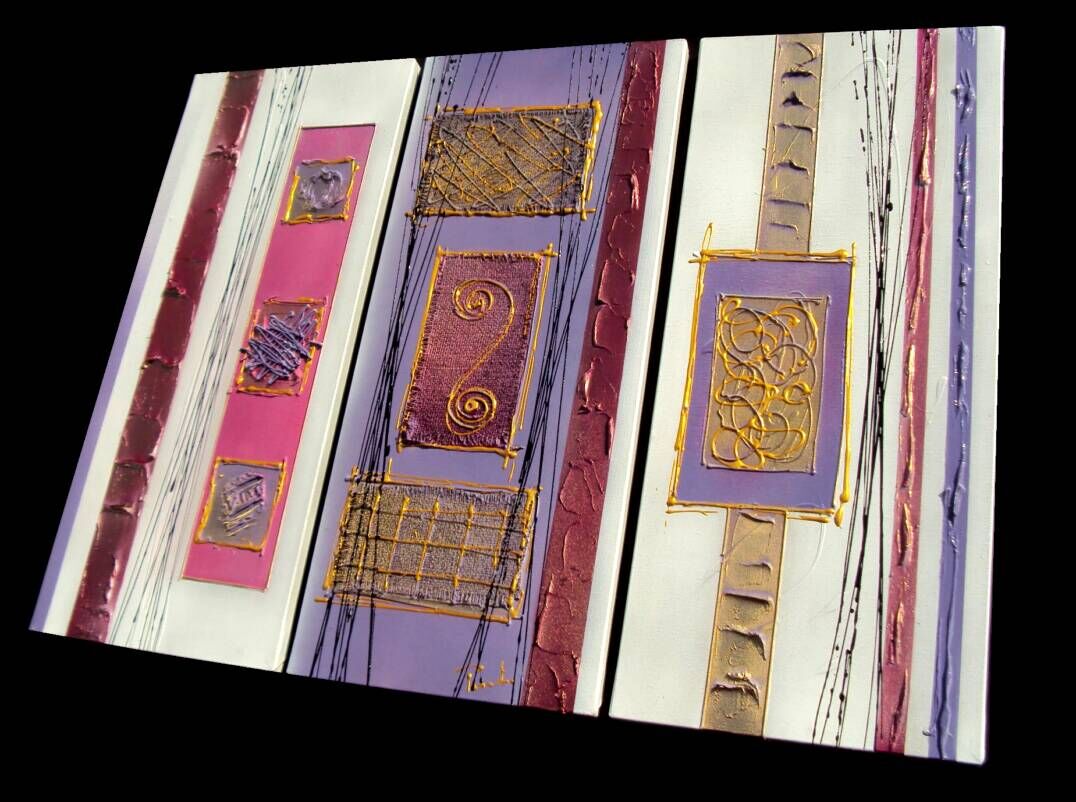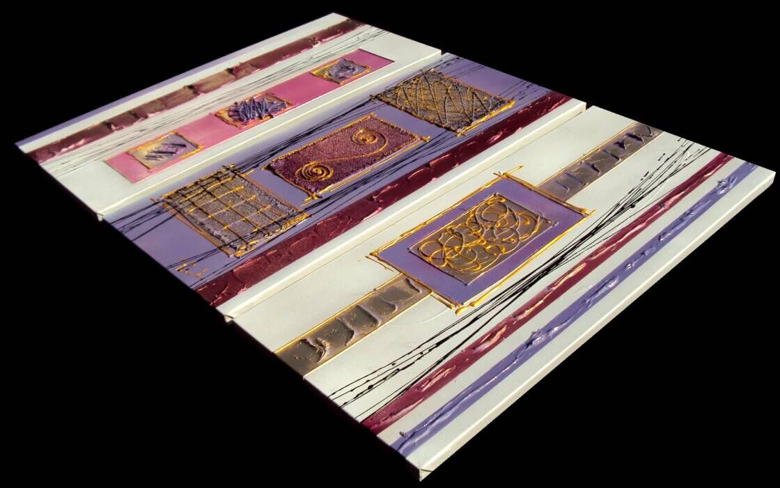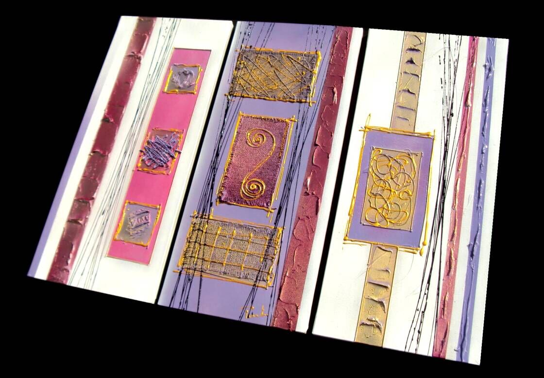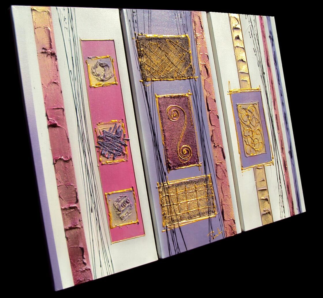 OPERA COMPOSTA DA 3 TELE 30 X 70 X 2 CM - REALIZZATA TRAMITE Tecnica ad olio + acrilici e metallici + resine ed inserti - 240 ,00 euro + sp sp---